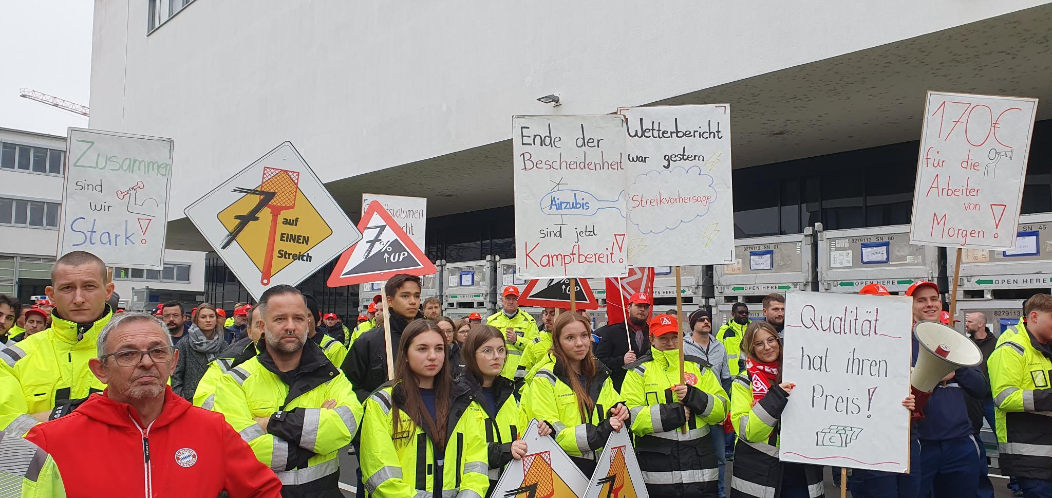 Beschäftigte in 107 bayerischen Betrieben legen Arbeit nieder, 3500 Warnstreikende ziehen durch Nürnberg, Bänder in BMW-Werken Regensburg und Landshut standen still, Audianer greifen in der Nacht ins Geschehen ein. Ott: „Die Unternehmen spüren die Wucht der Solidarität der bayerischen Beschäft
