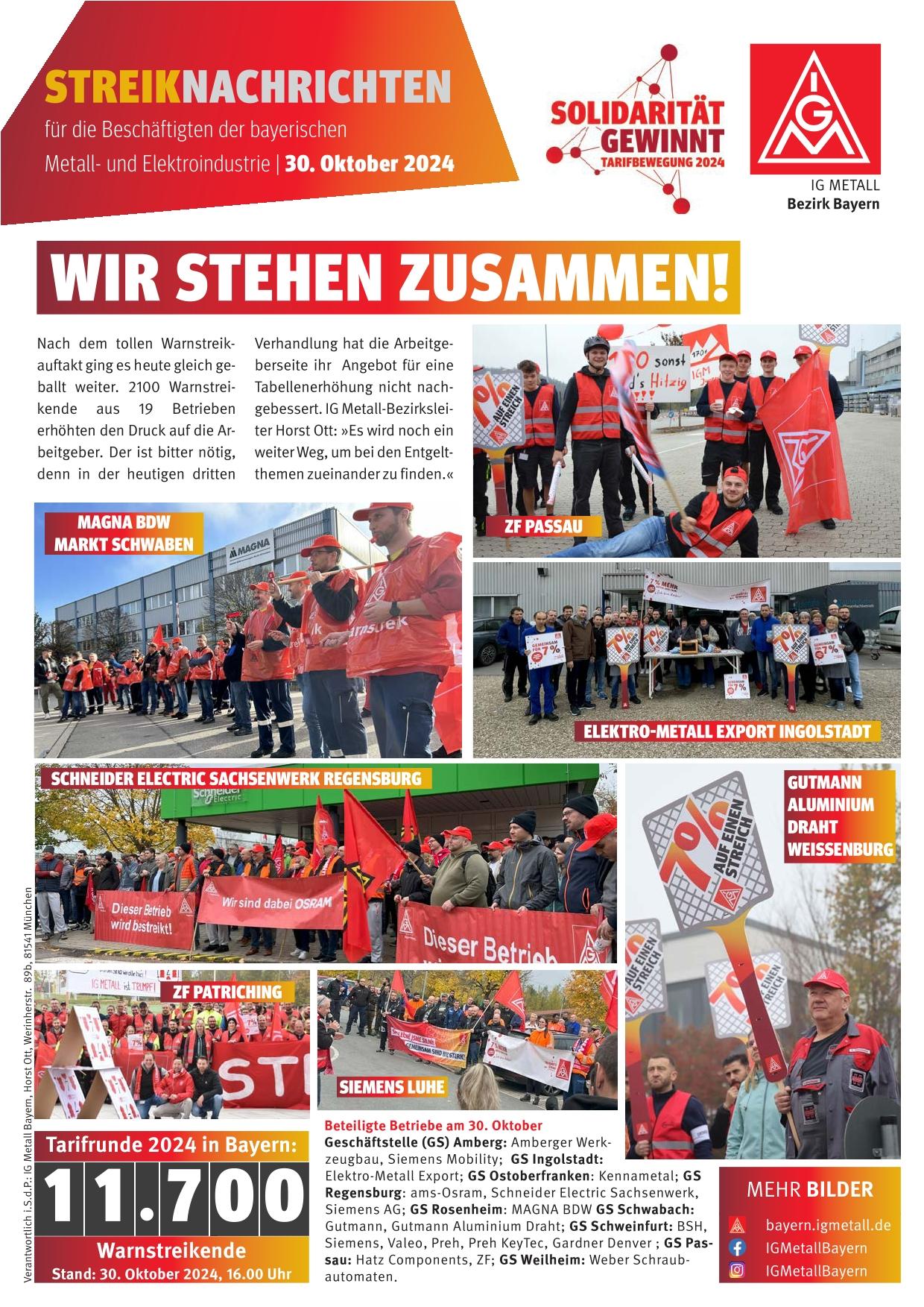 2100 Warnstreikende aus 19 Betrieben erhöhen Druck auf Arbeitgeber