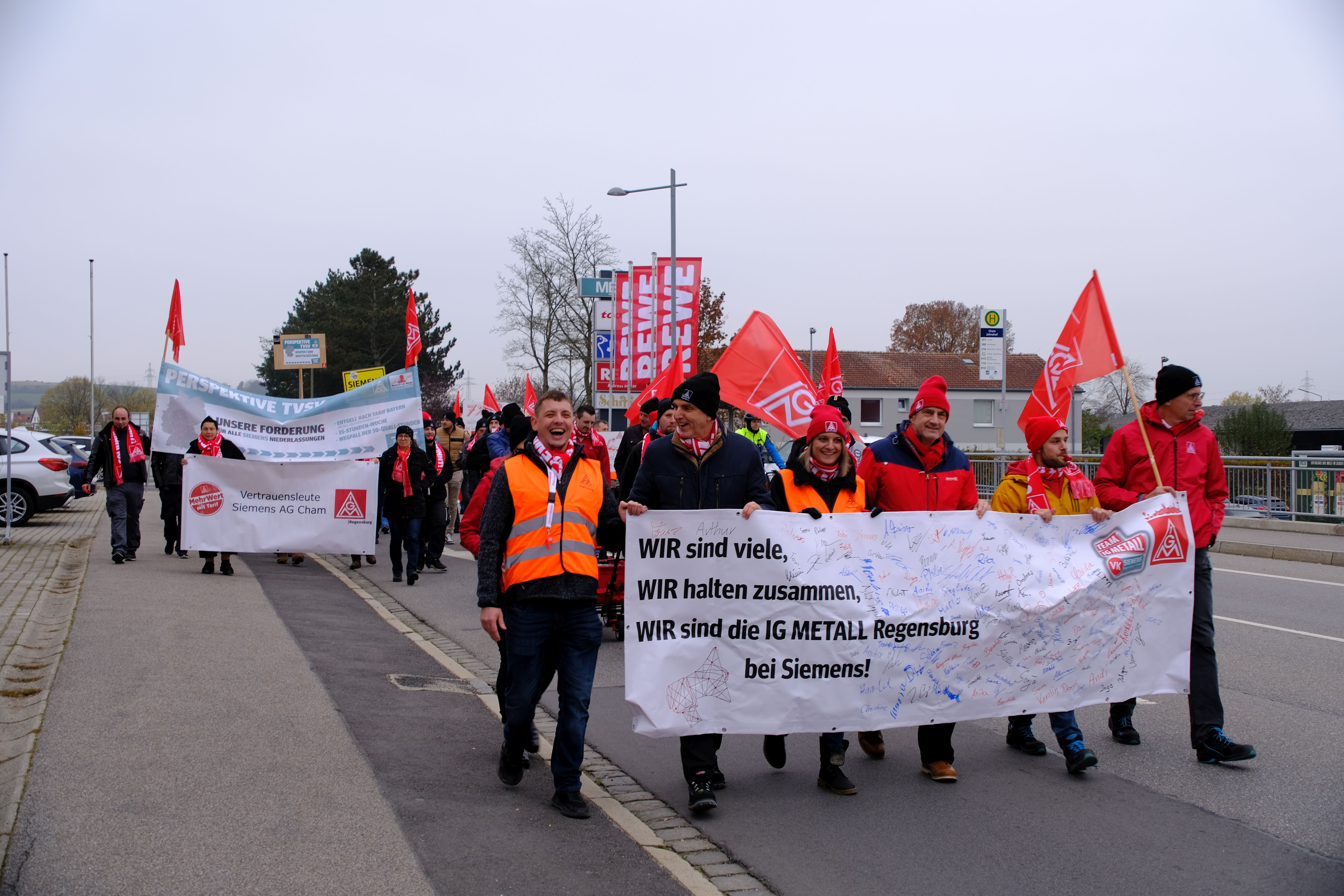 15.000 bei Großdemo bei Audi. Jeweils 9000 Warnstreikende in München und Schwaben. IG Metall-Bezirksleiter Horst Ott: „Wir nehmen diese Kraft und Energie der Menschen mit in die Verhandlungsrunde.“