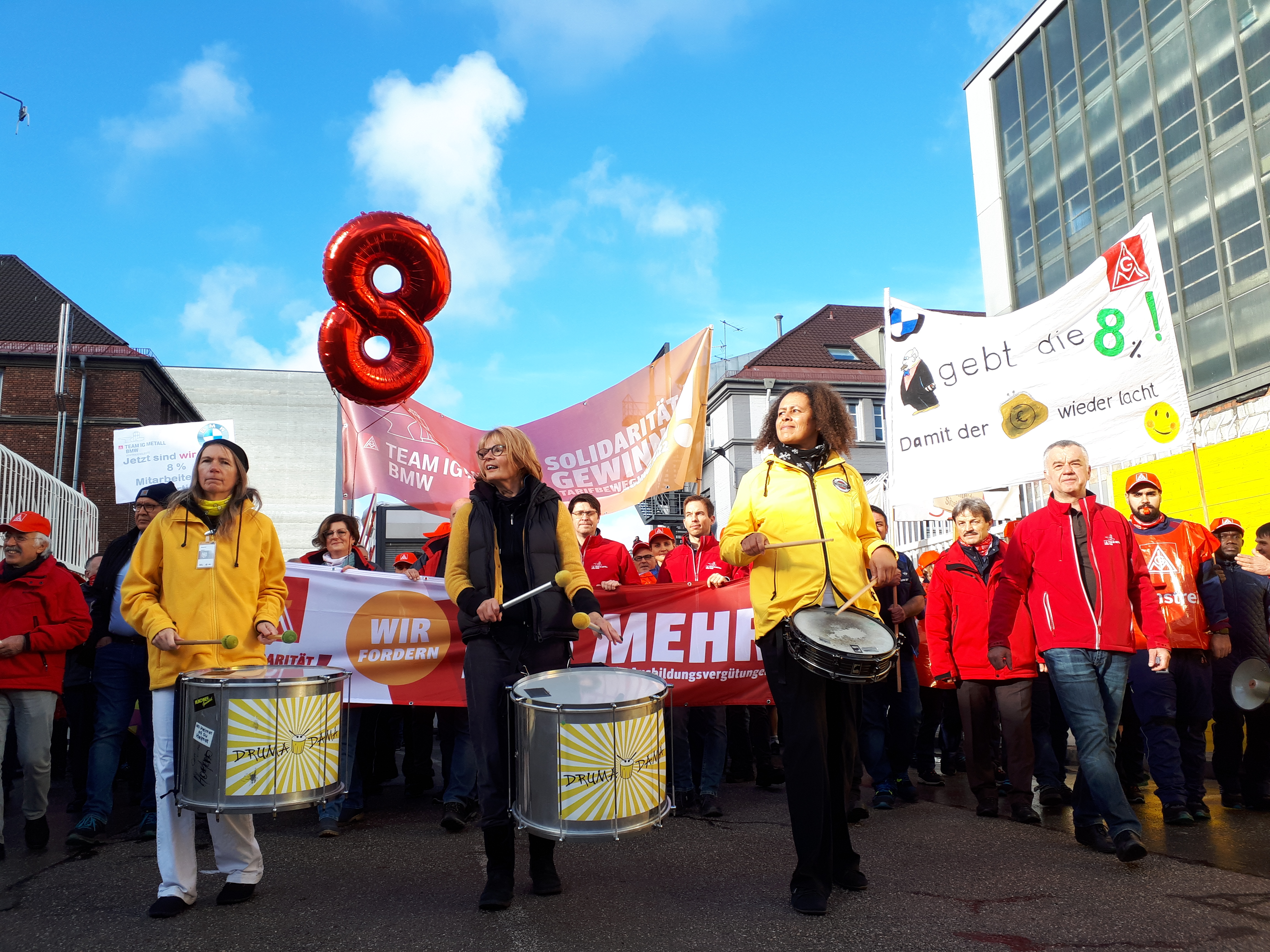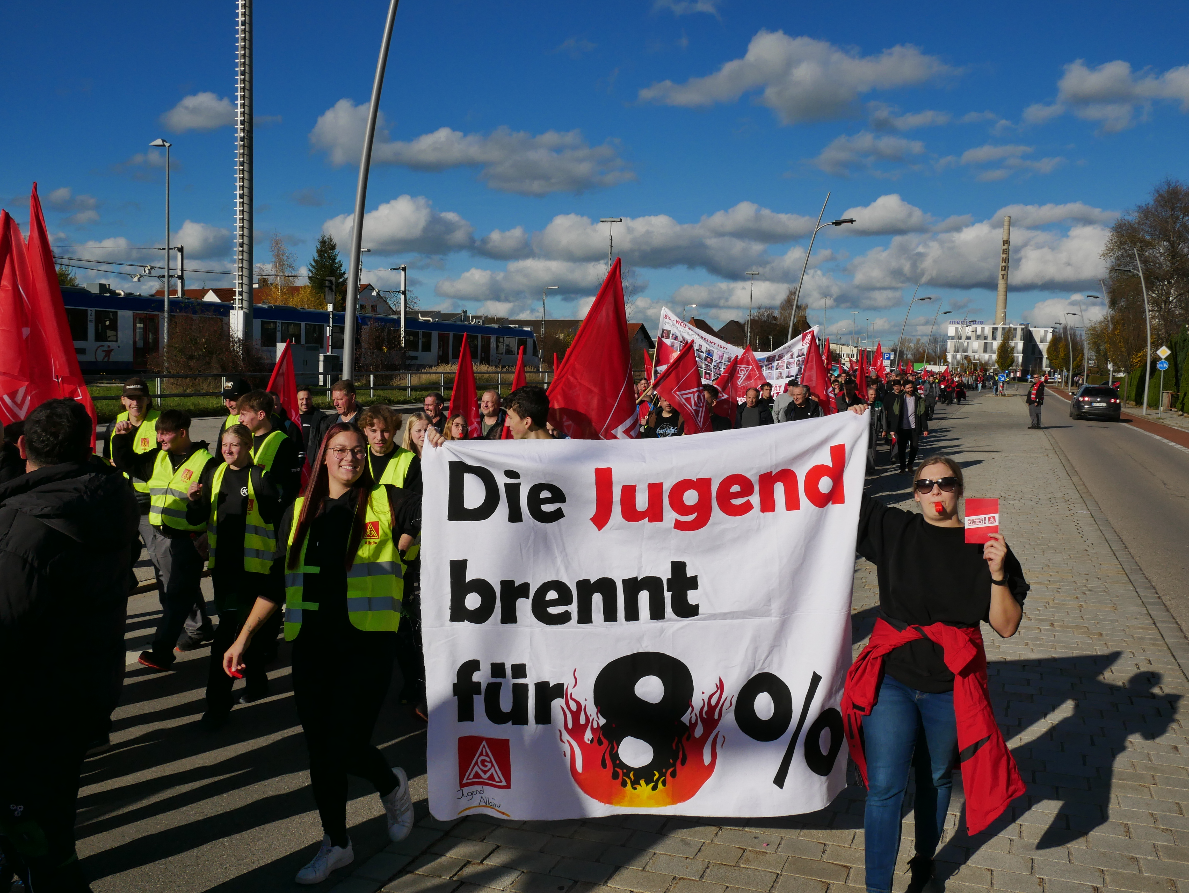 Der Arbeitgeberverband vbm hatte am Dienstag in der vierten Tarifverhandlung sein viel zu schwaches Angebot aus der dritten Tarifverhandlung lediglich wiederholt und immer noch keine Prozentzahl für eine Entgelterhöhung angeboten. Die IG Metall fordert für die rund 855.000 Beschäftigten in der bayerischen Metall- und Elektroindustrie 8 Prozent mehr Geld bei einer Laufzeit von zwölf Monaten.