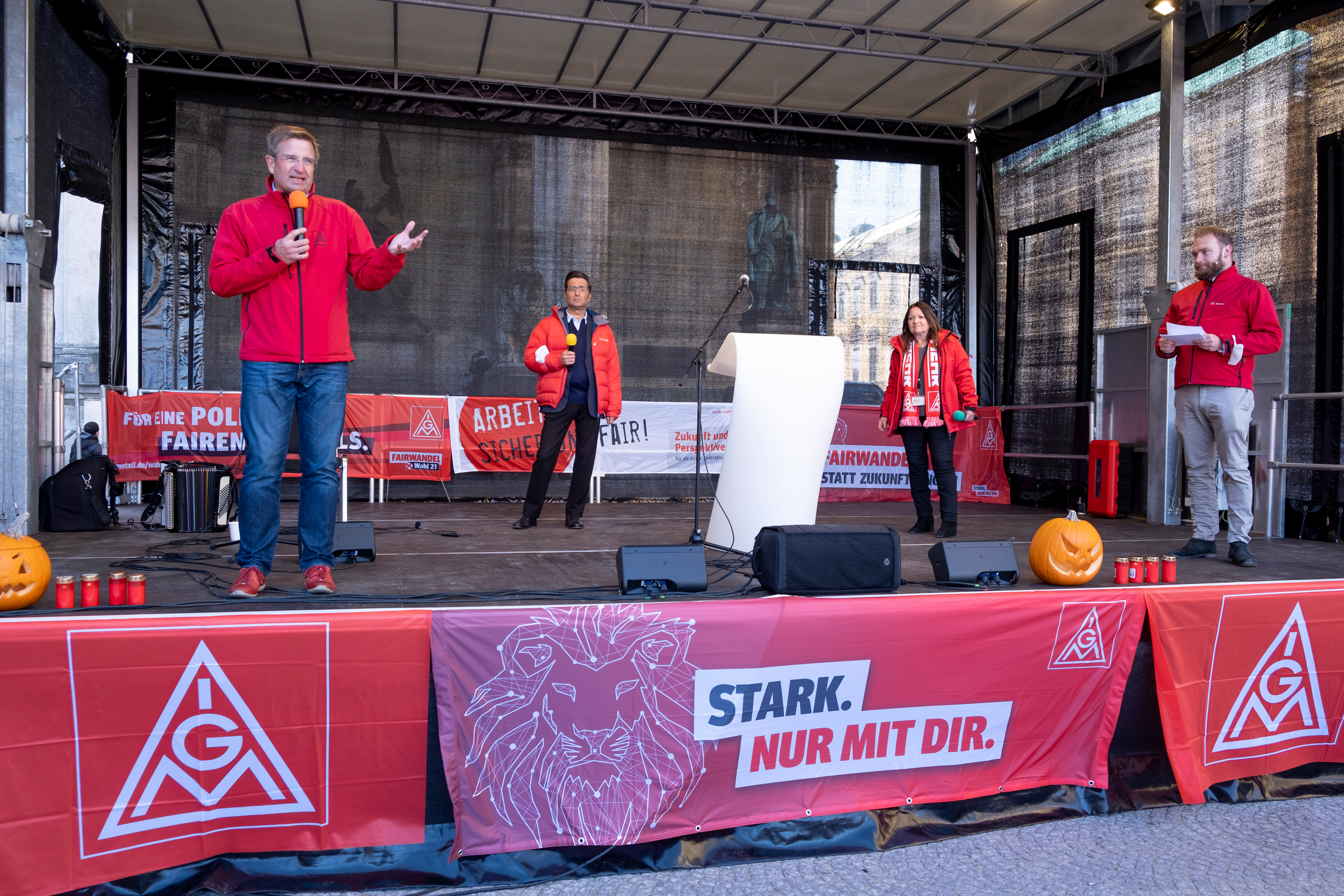 Dort ermahnte der bayerische IG Metall-Chef Johann Horn in seiner Rede die Koalitionsverhandler, die Interessen der Beschäftigten zusammen mit dem Klimaschutz in den Mittelpunkt der künftigen Regierungspolitik zu stellen: "Eine gute Zukunft gibt es nur sozial und ökologisch. Wir brauchen keine Absichtserklärungen. Sondern wir brauchen verbindliche Investitionen für eine moderne ökologische Industrie und eine verbriefte Absicherung und Qualifizierung der Menschen im Wandel."