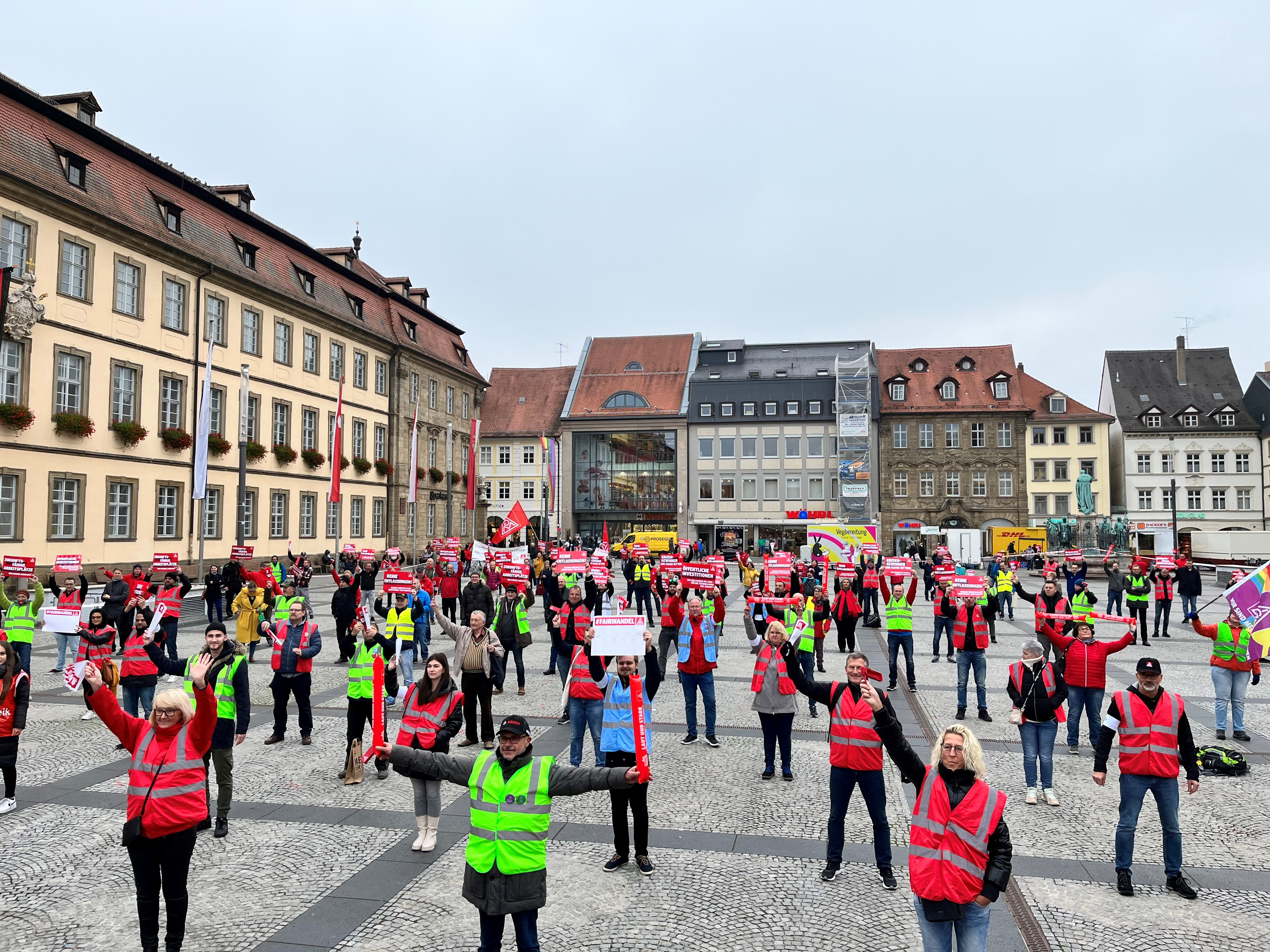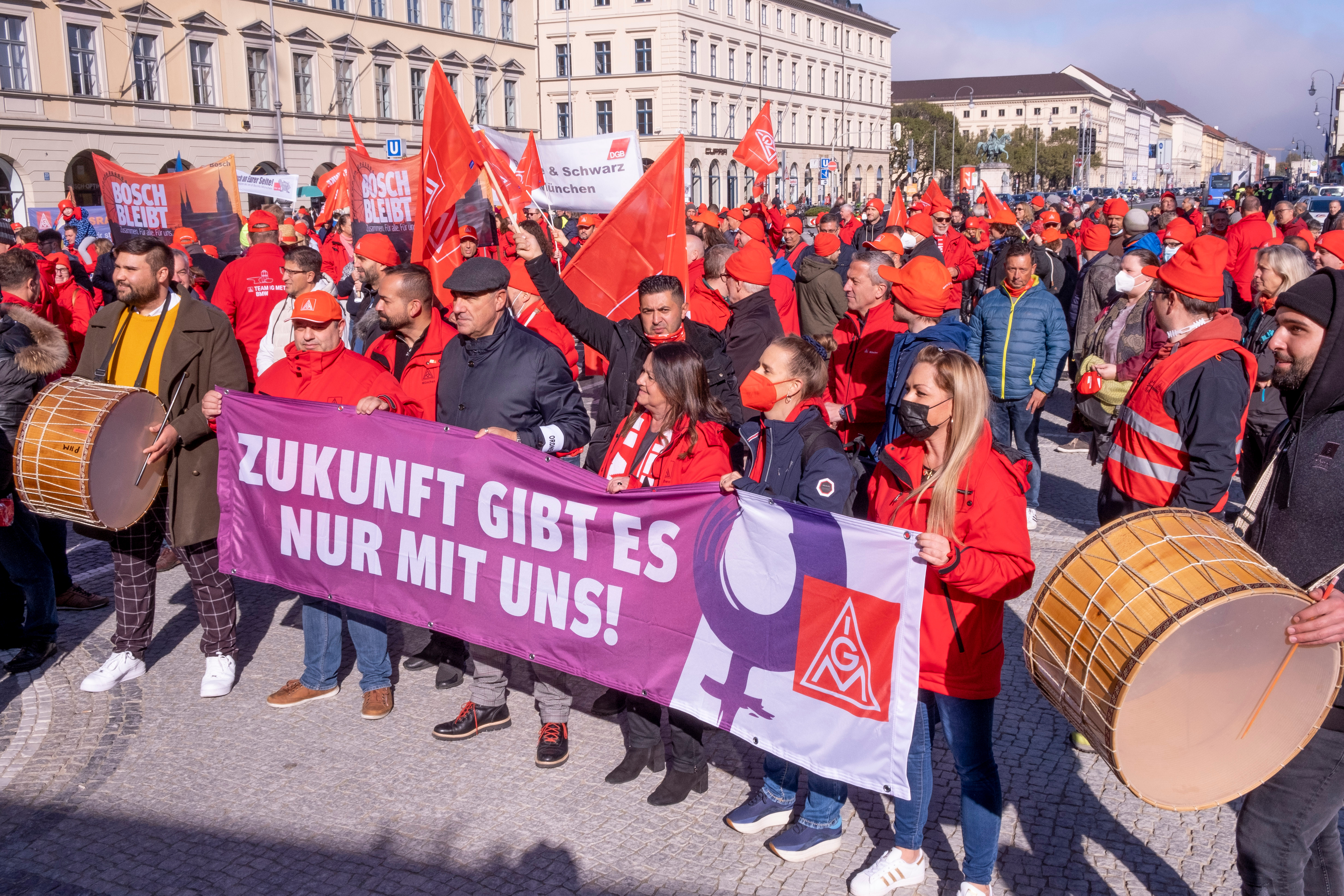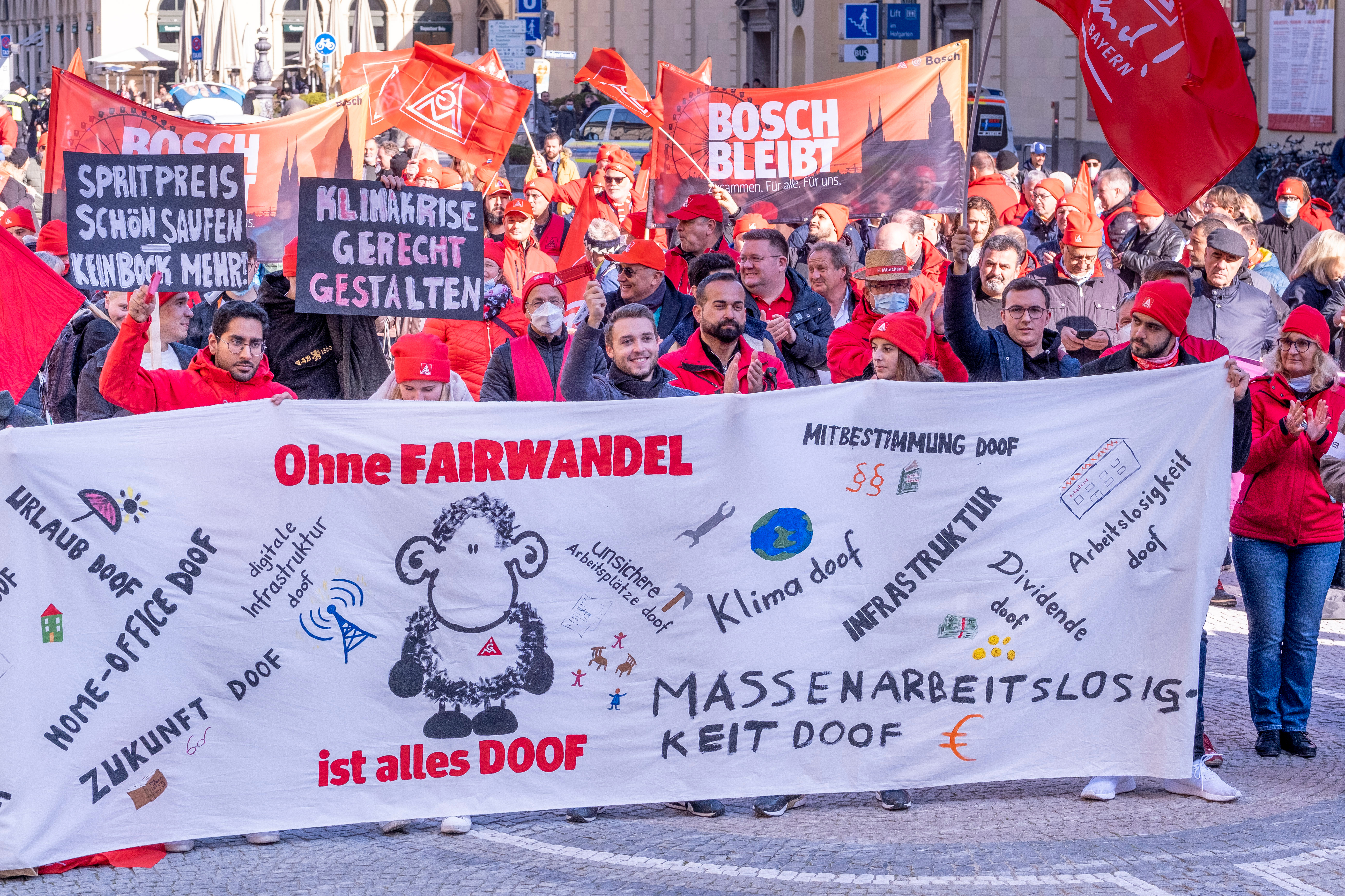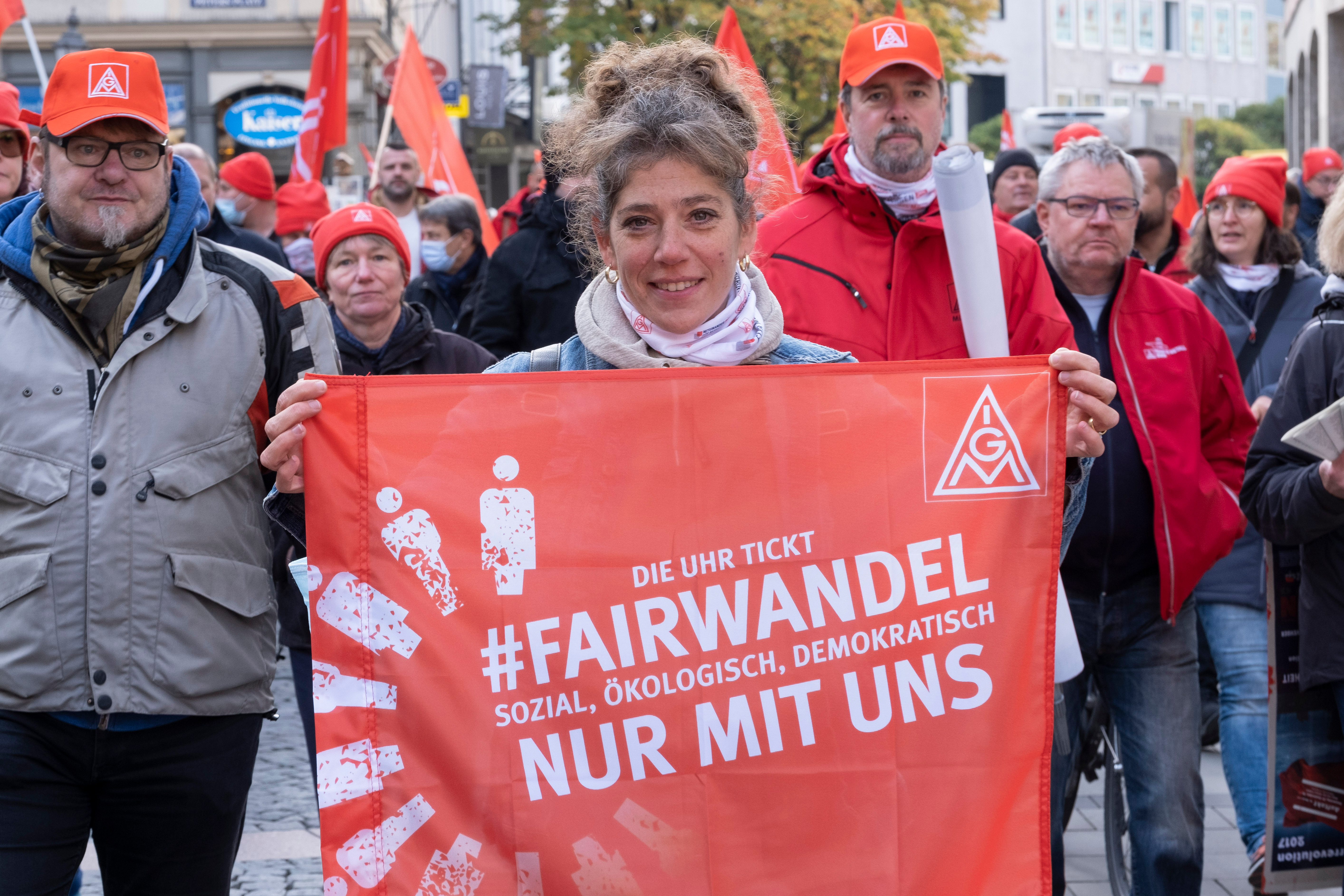 13.000 Beschäftigte haben heute in ganz Bayern für einen fairen sozial-ökologischen Wandel von Industrie und Gesellschaft demonstriert. Im Rahmen eines bundesweiten Aktionstages fanden rund 40 Demonstrationen, Kundgebungen und betriebliche Aktionen in allen bayerischen Regionen statt. Die größten Demonstrationen gab es in Schweinfurt und München. Zu weiteren öffentlichen Kundgebungen versammelten sich Beschäftigte in Bad Windsheim, Bamberg, Nürnberg, Passau, Regensburg, Schwabach und Frontenhausen.