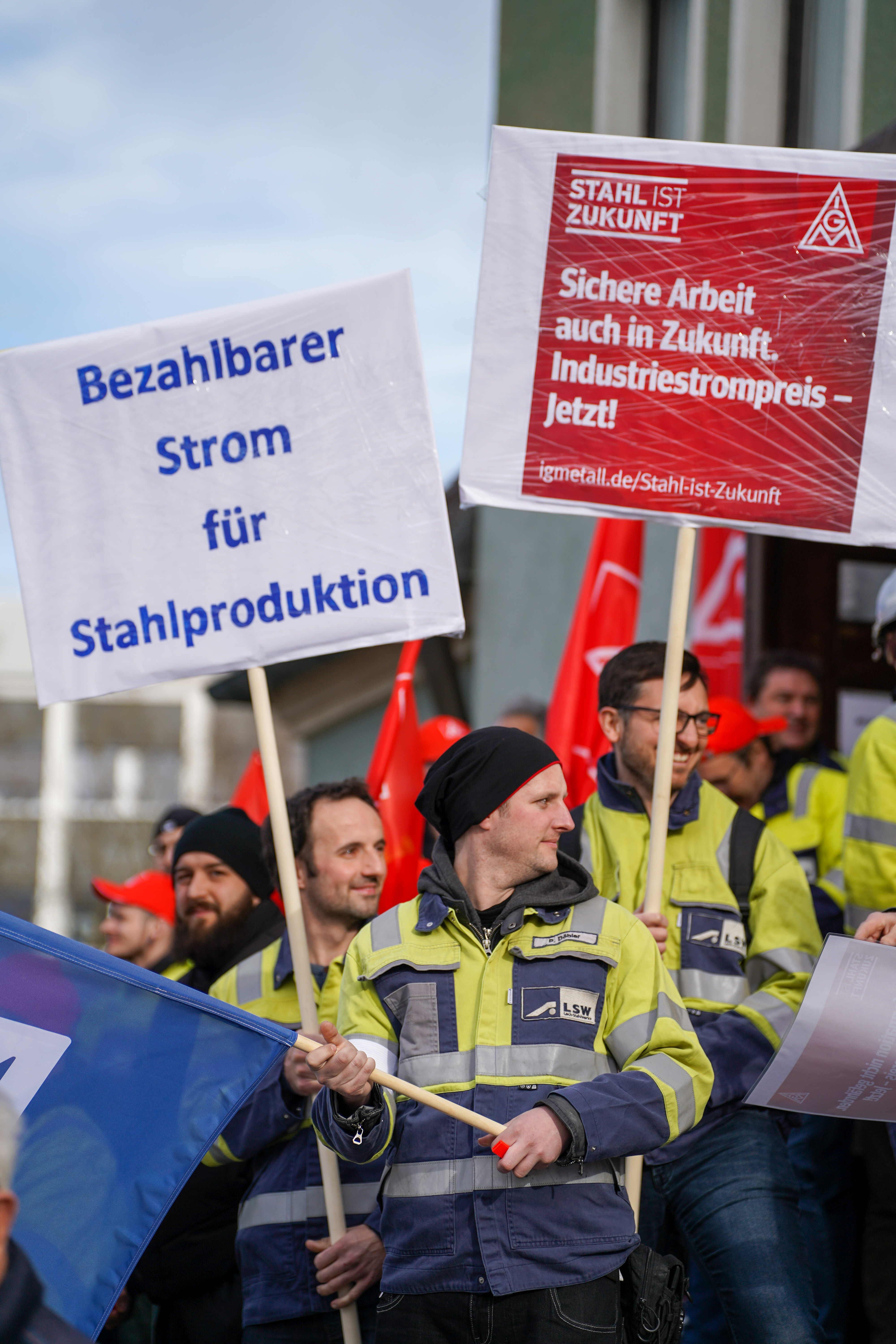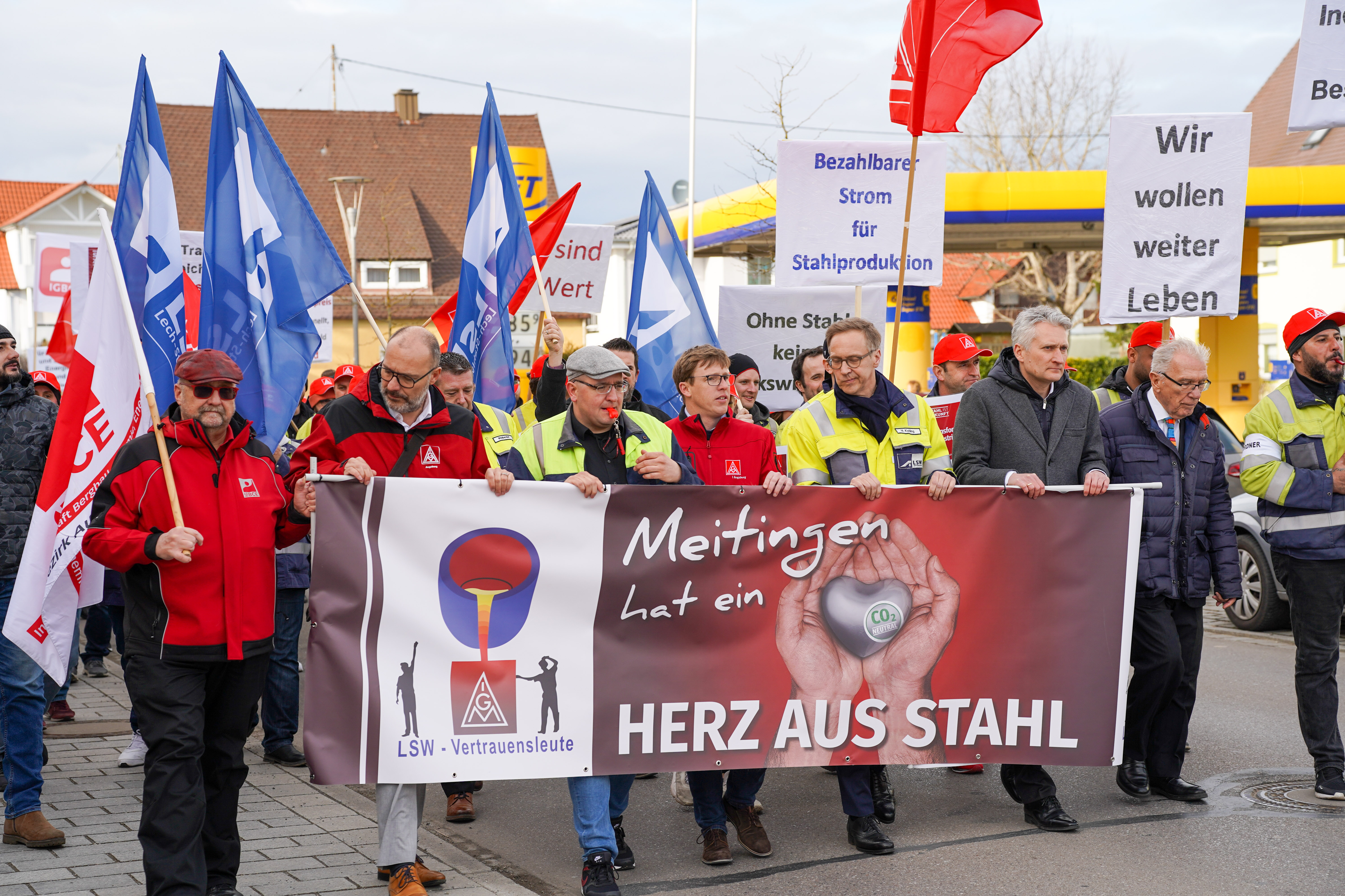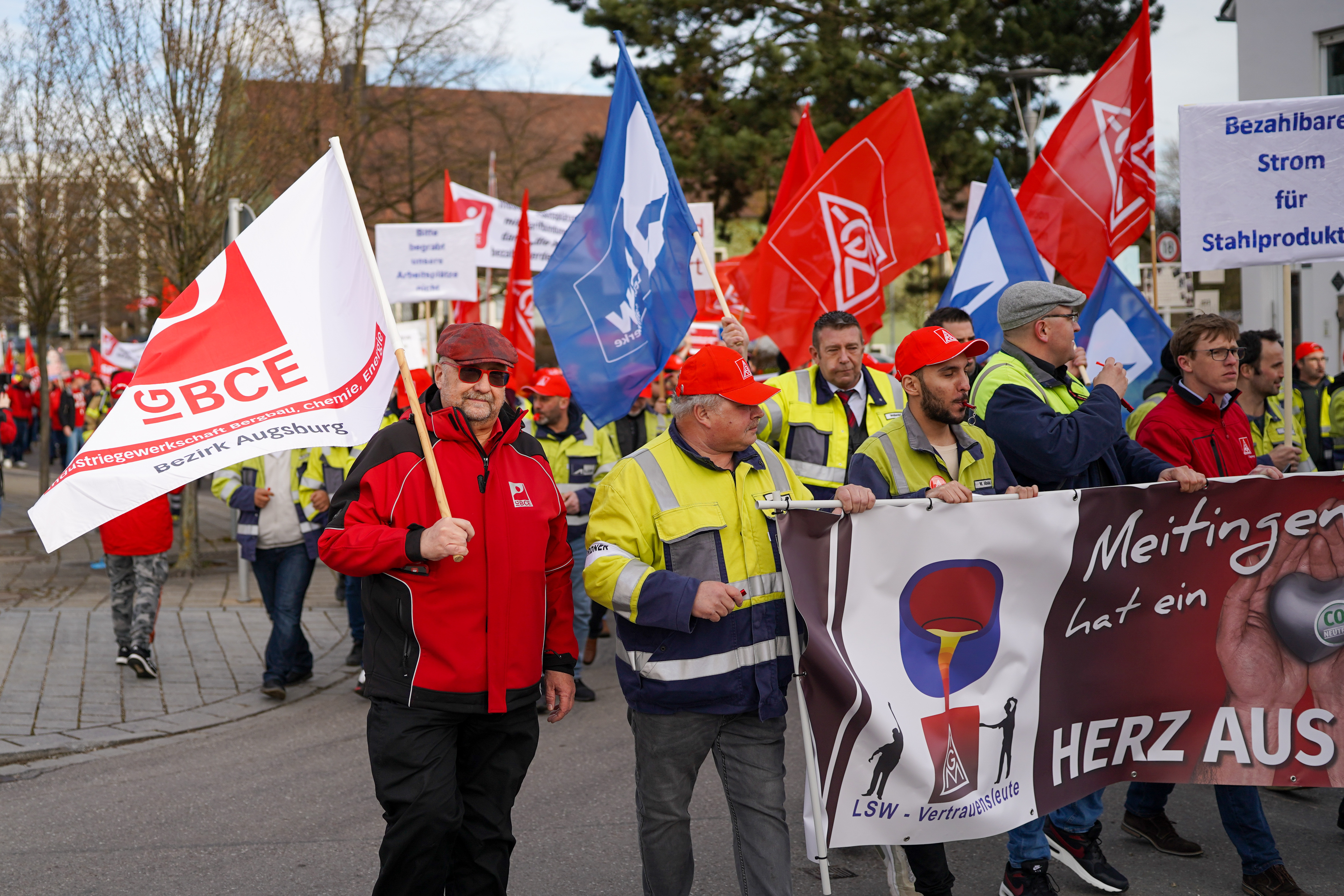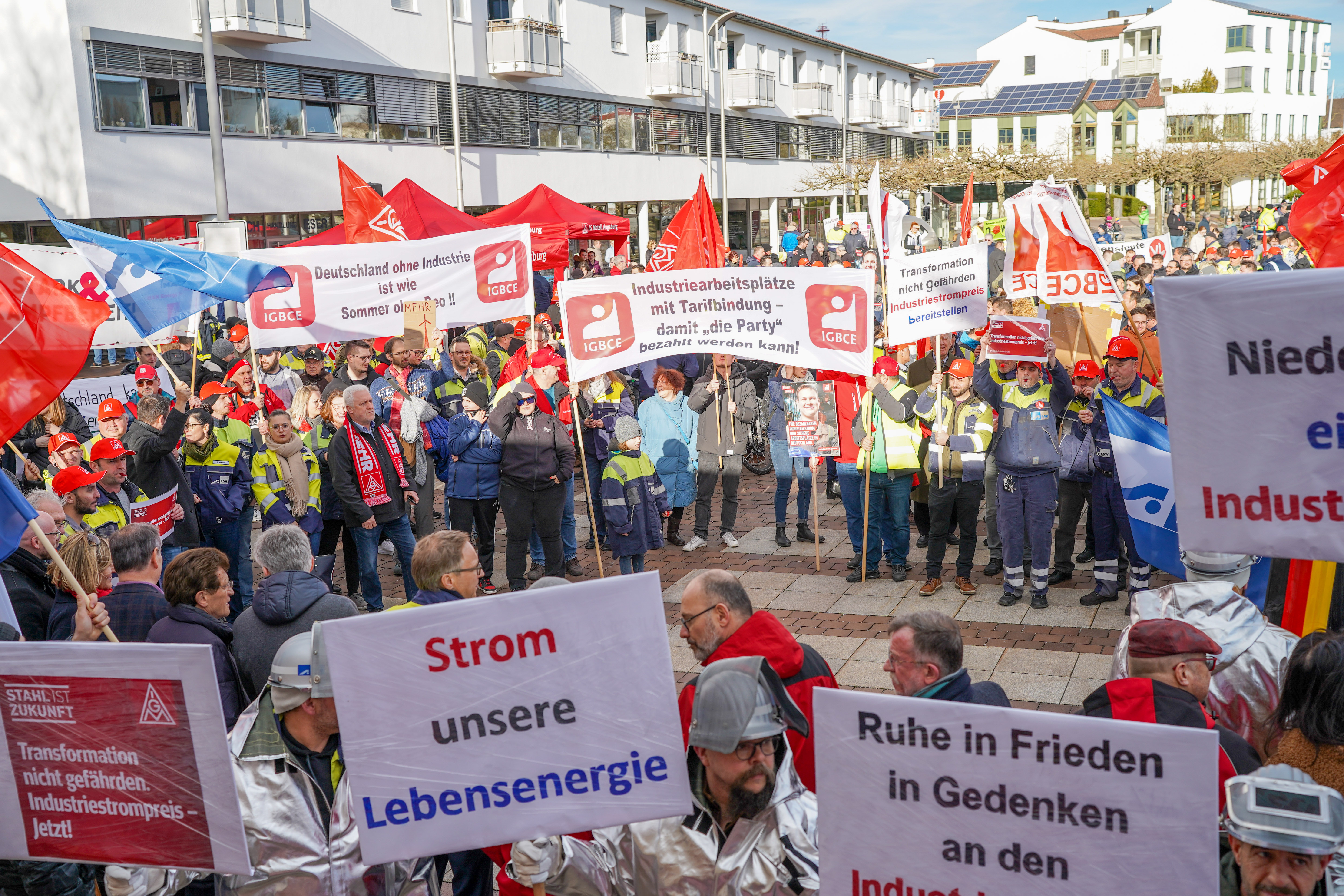 Weil die Strompreise in Deutschland zu hoch sind, sorgen sich die Beschäftigten der Lech-Stahlwerke Meitingen um die Zukunft ihre Arbeitsplätze. 700 Beschäftigte, darunter auch Delegationen aus anderen Betrieben, sind deshalb dem Aufruf von IG Metall und IGBCE gefolgt - und machten anlässlich des bundesweiten „Aktionstag Industriestrompreis“ am 9. März bei einer Kundgebung in Meitingen mächtig Druck auf die Politik für faire Strompreise.