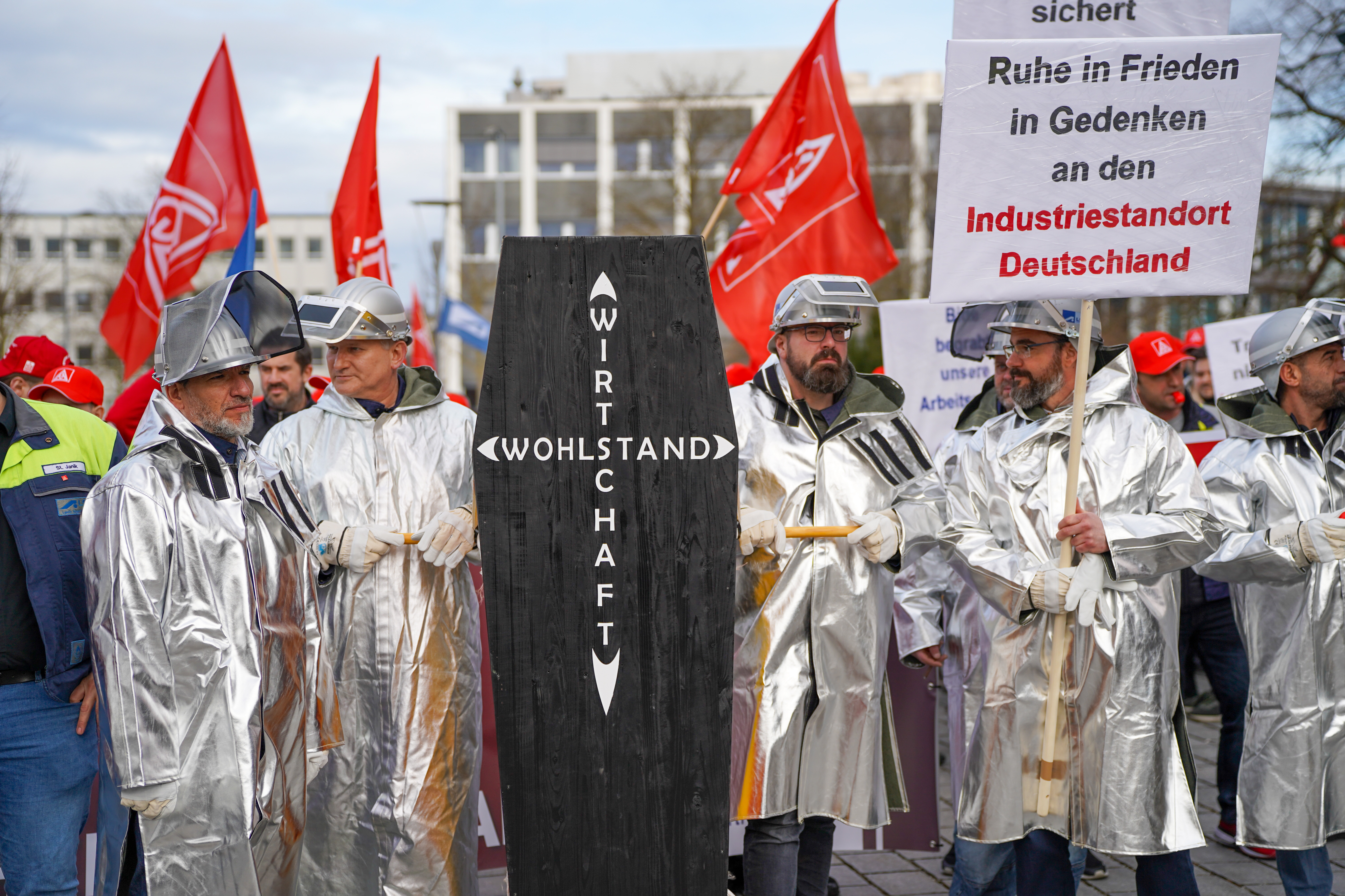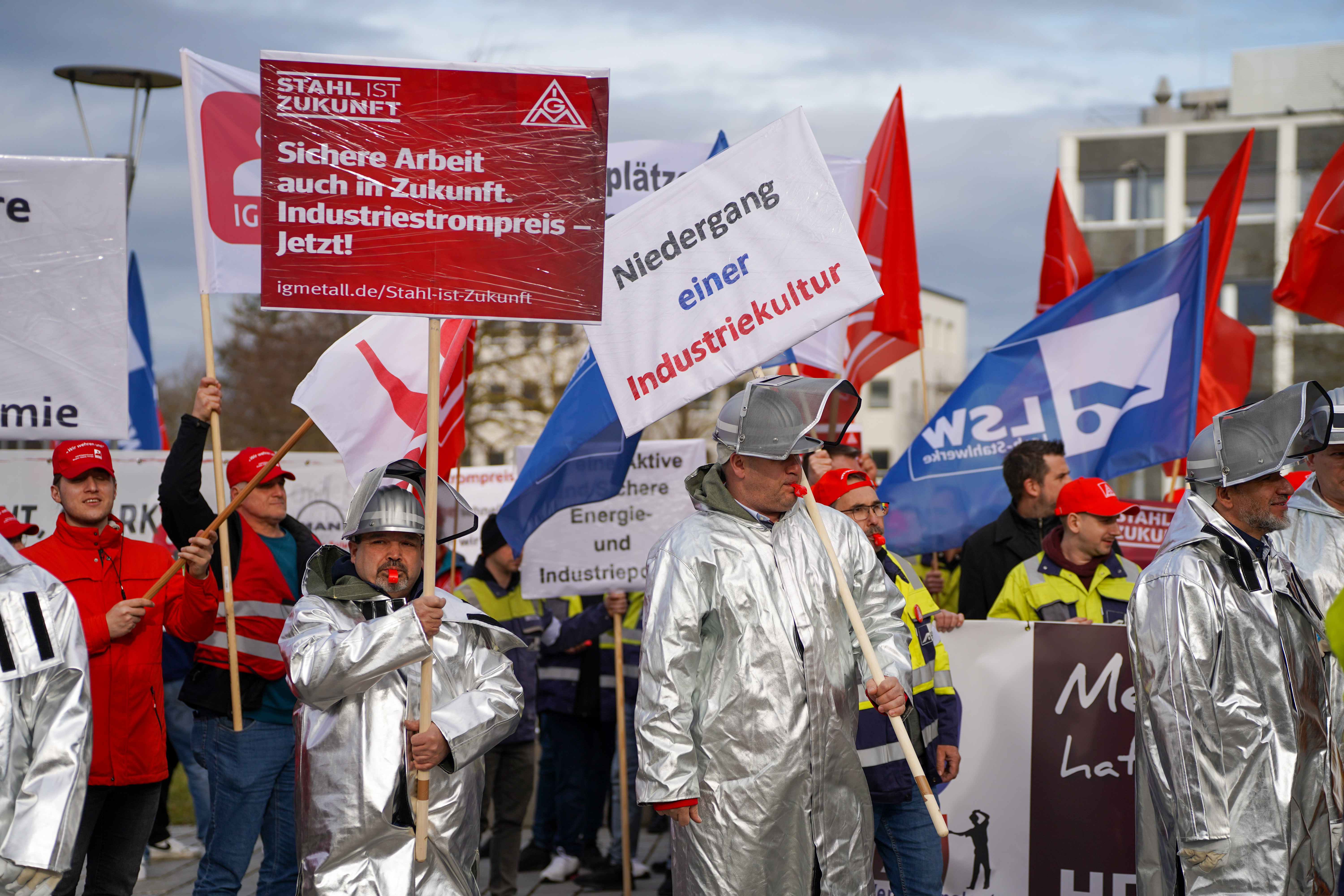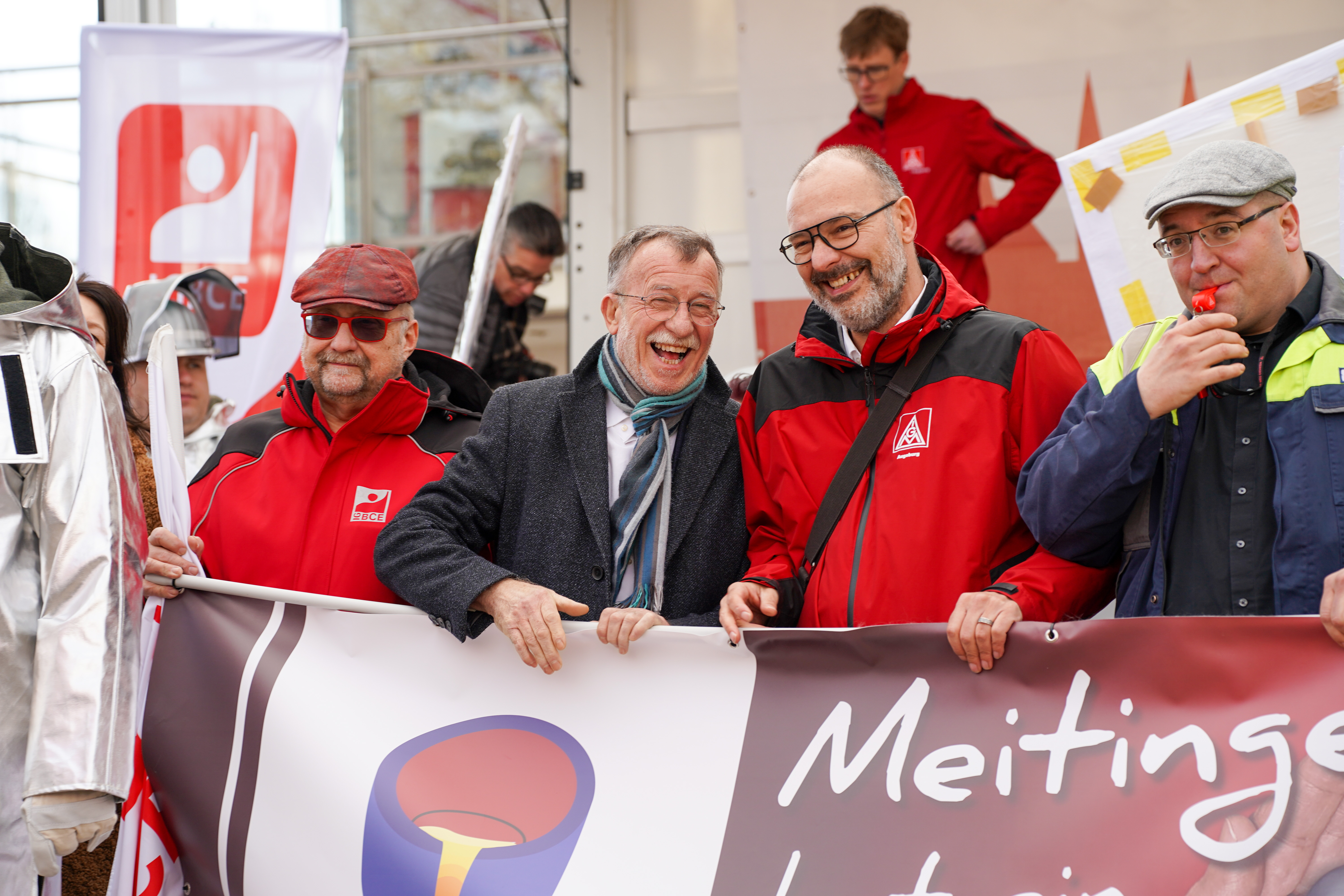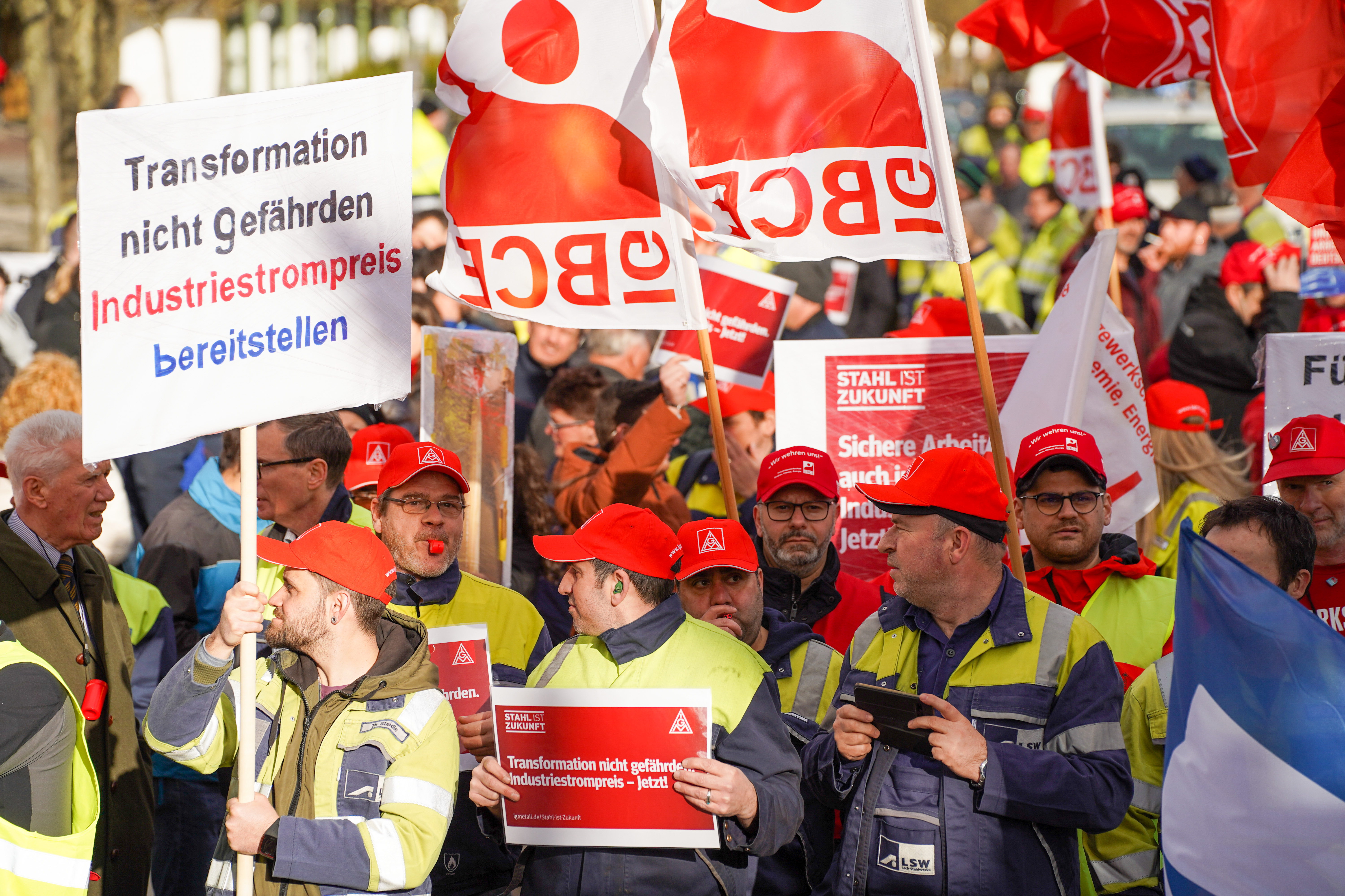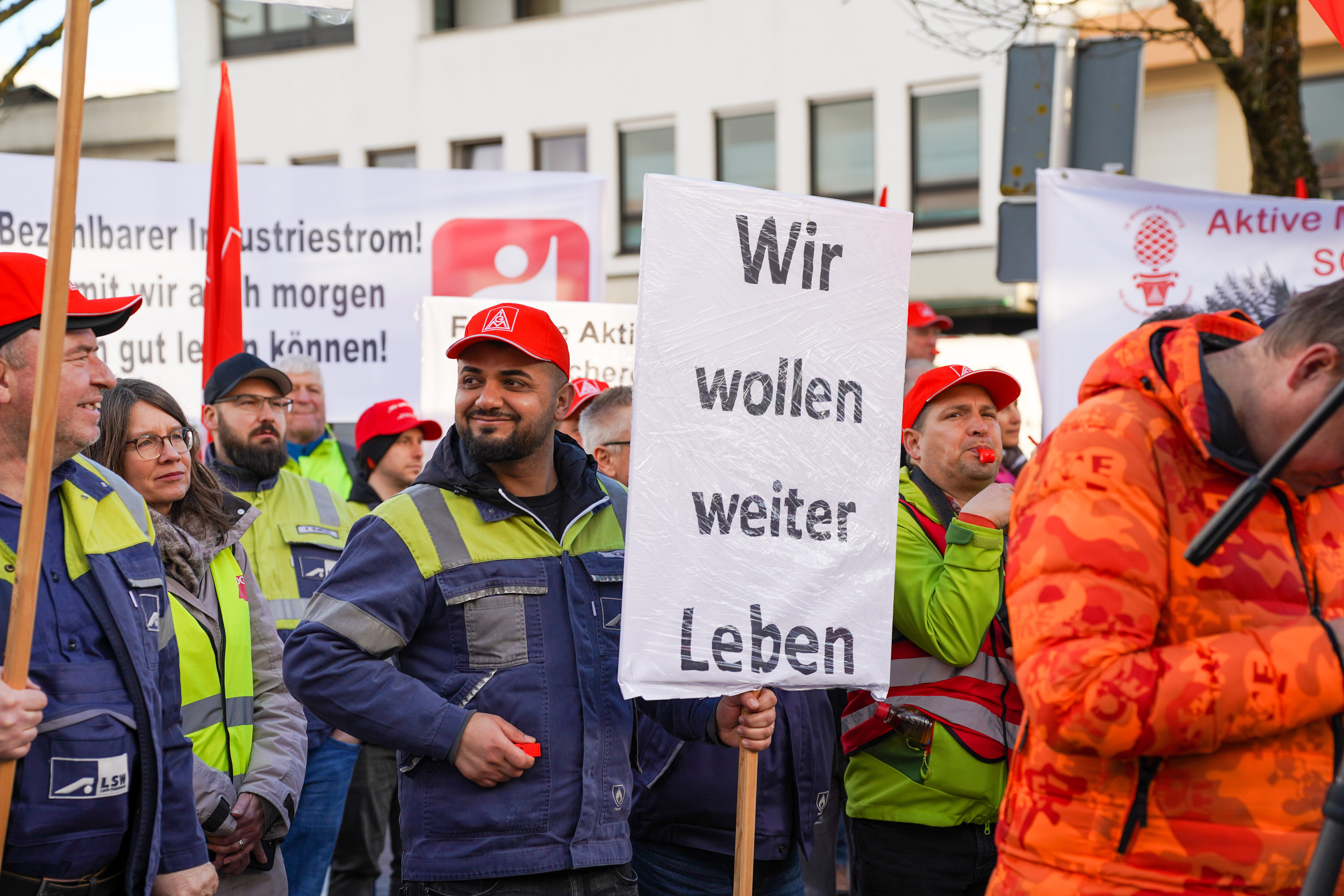 Weil die Strompreise in Deutschland zu hoch sind, sorgen sich die Beschäftigten der Lech-Stahlwerke Meitingen um die Zukunft ihre Arbeitsplätze. 700 Beschäftigte, darunter auch Delegationen aus anderen Betrieben, sind deshalb dem Aufruf von IG Metall und IGBCE gefolgt - und machten anlässlich des bundesweiten „Aktionstag Industriestrompreis“ am 9. März bei einer Kundgebung in Meitingen mächtig Druck auf die Politik für faire Strompreise.