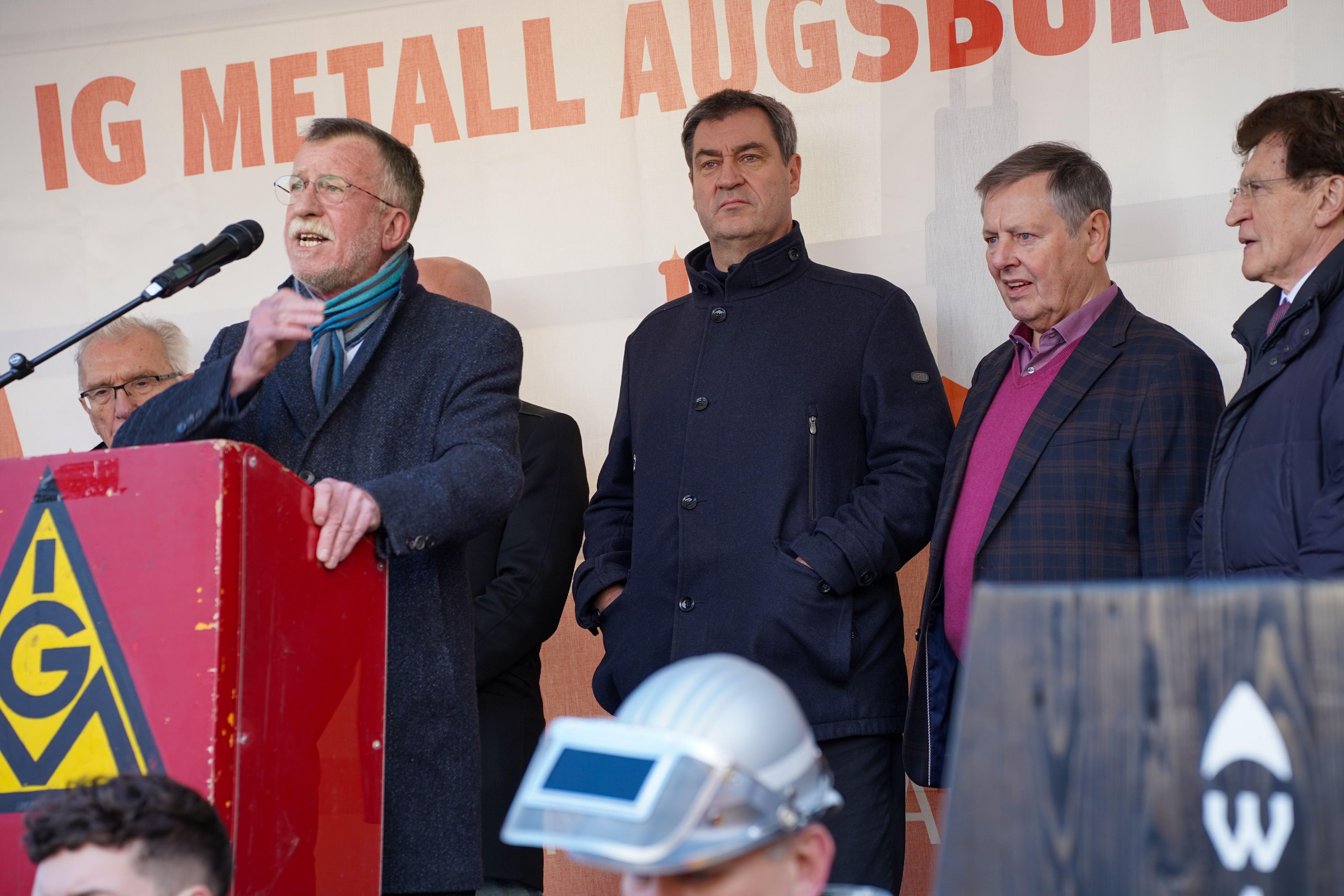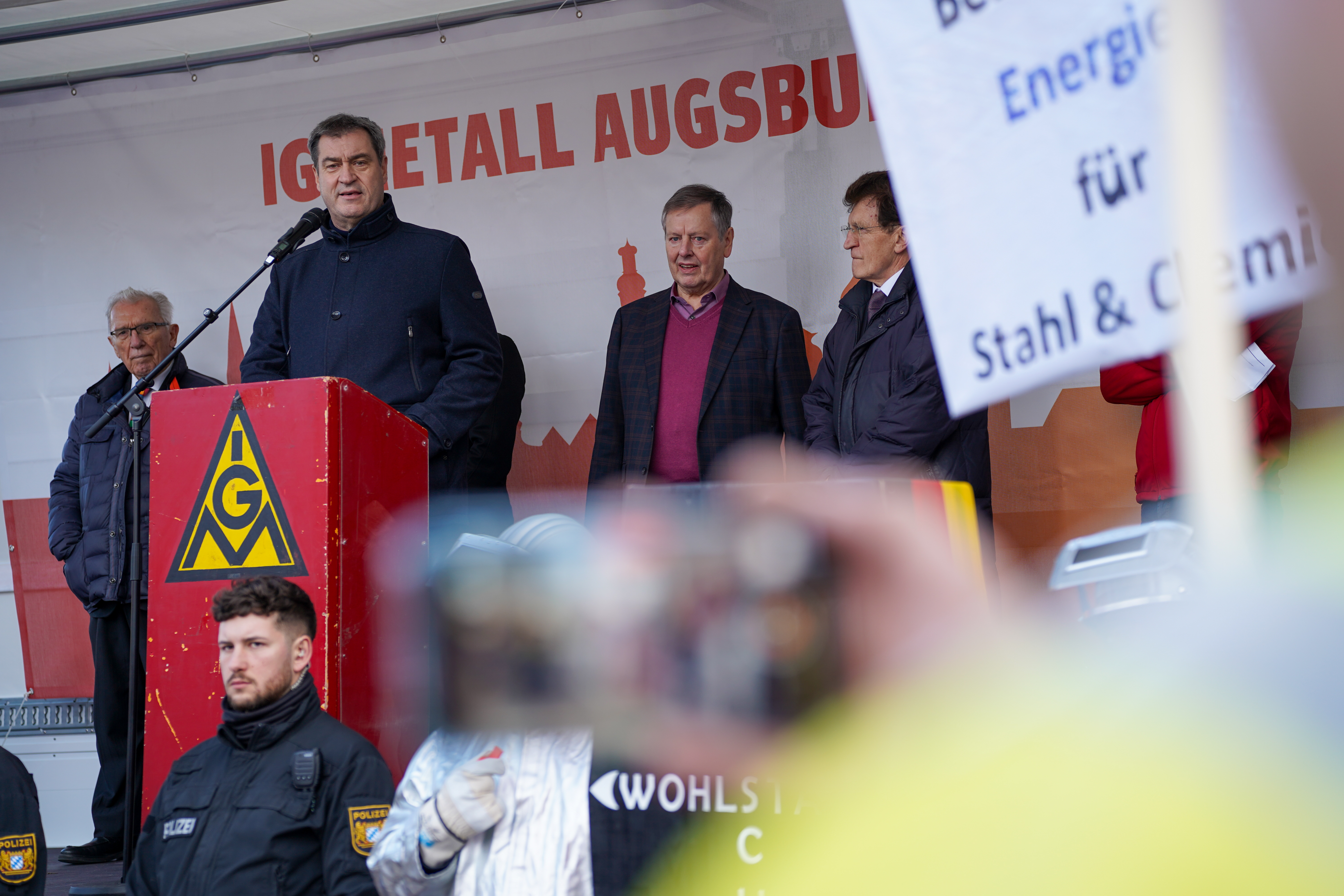 Zu Gast in Meitingen war auch der bayerische Ministerpräsident Markus Söder. Er unterstützte die Forderung der Gewerkschaften nach einem Industriestrompreis. „Ohne Industrie hat Deutschland keinen Wohlstand in der Zukunft“, sagte er. Und: „Ich möchte, dass Leute, die arbeiten, auch von dieser Arbeit leben können.“ Er schloss seine Rede mit den Worten: „Ja zum Industriestrompreis und Ja zur besseren Energiepolitik und Ja zu eurem Engagement!“