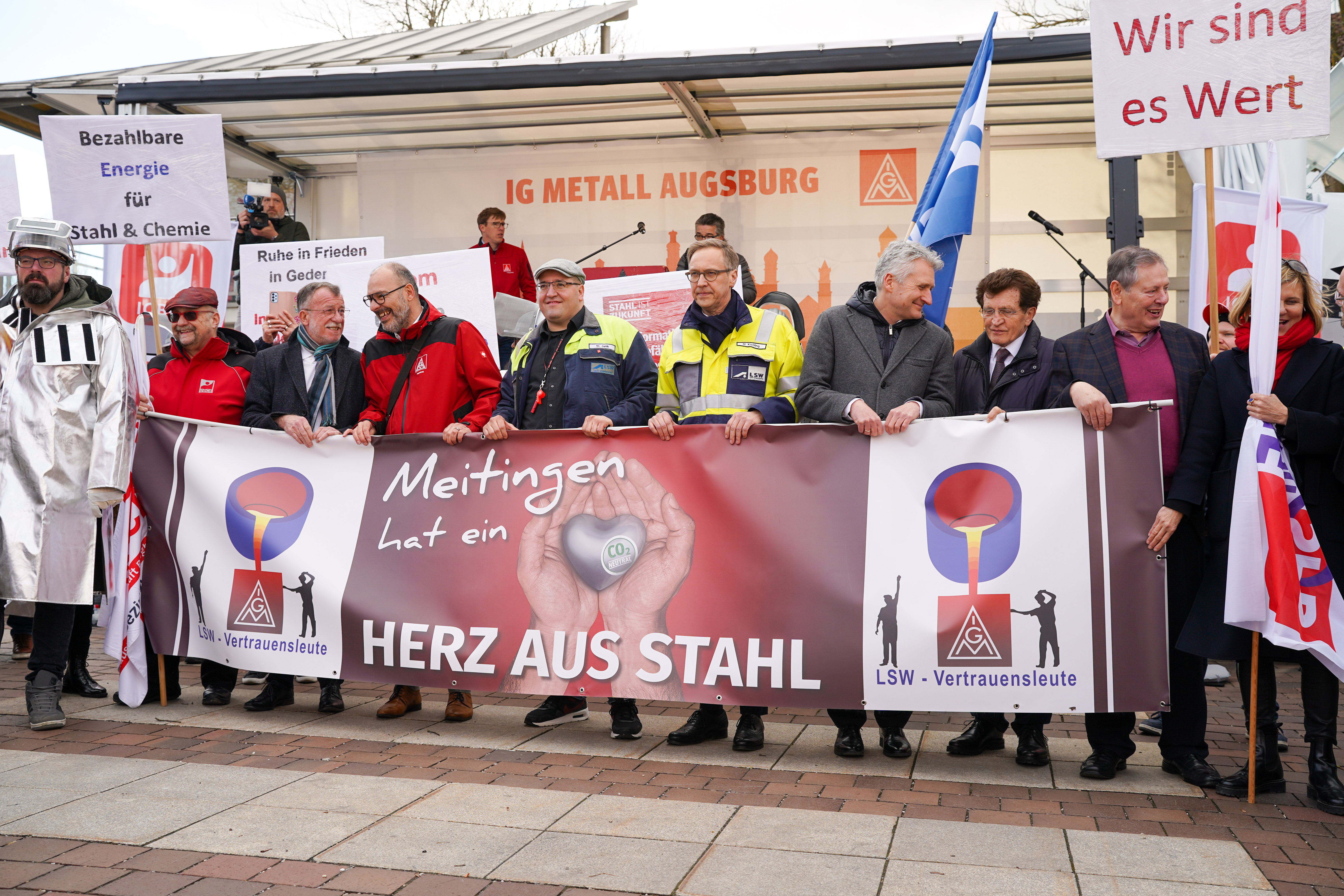 „Die Kolleginnen und Kollegen der Lech-Stahlwerke machen einen guten und wichtigen Job. Wir setzen uns dafür ein, dass das auch in Zukunft so bleibt“, sagte Roberto Armellini, Geschäftsführer der IG Metall Augsburg. „Wir wollen, dass hier bei uns künftig grüner Stahl klimafreundlich produziert wird. Wir wollen, dass die dafür notwendigen Investitionen hier in Meitingen erfolgen und die Arbeitsplätze der Zukunft hier entstehen. Das wird nur gelingen, wenn die Bundesregierung für einen fairen, international wettbewerbsfähigen Strompreis sorgt.“