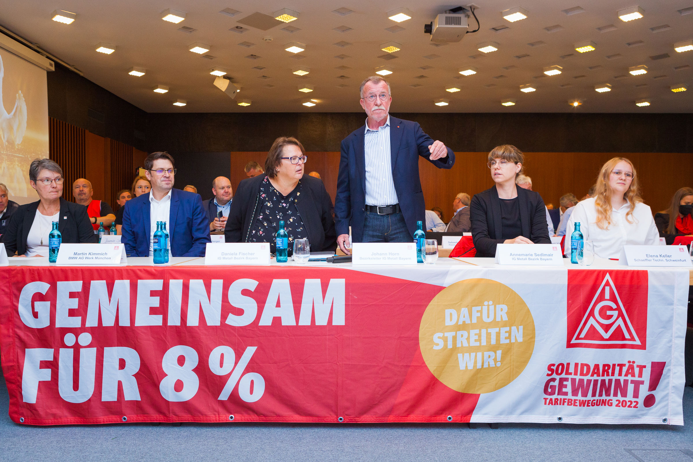 IG Metall-Bezirksleiter und Verhandlungsführer Johann Horn betont, wie dringend die Beschäftigten eine kräftige prozentuale Entgeltsteigerung brauchen: „Nach zwei Corona-Tarifrunden ohne Tabellenerhöhung und angesichts des extremen Anstiegs der Lebenshaltungskosten sorgen sich die Menschen, wie sie ihren Lebensunterhalt bezahlen sollen. Es gibt echte Existenzängste unter den Beschäftigten, die Stimmung in den Belegschaften ist aufgeheizt. Denn im Gegensatz zu den meisten Betrieben können die Menschen die Preissteigerungen nicht weitergeben.“ Das beweisen auch die in den letzten Monaten um über zehn Prozent gestiegenen Erzeugerpreise in der Metall- und Elektroindustrie.
