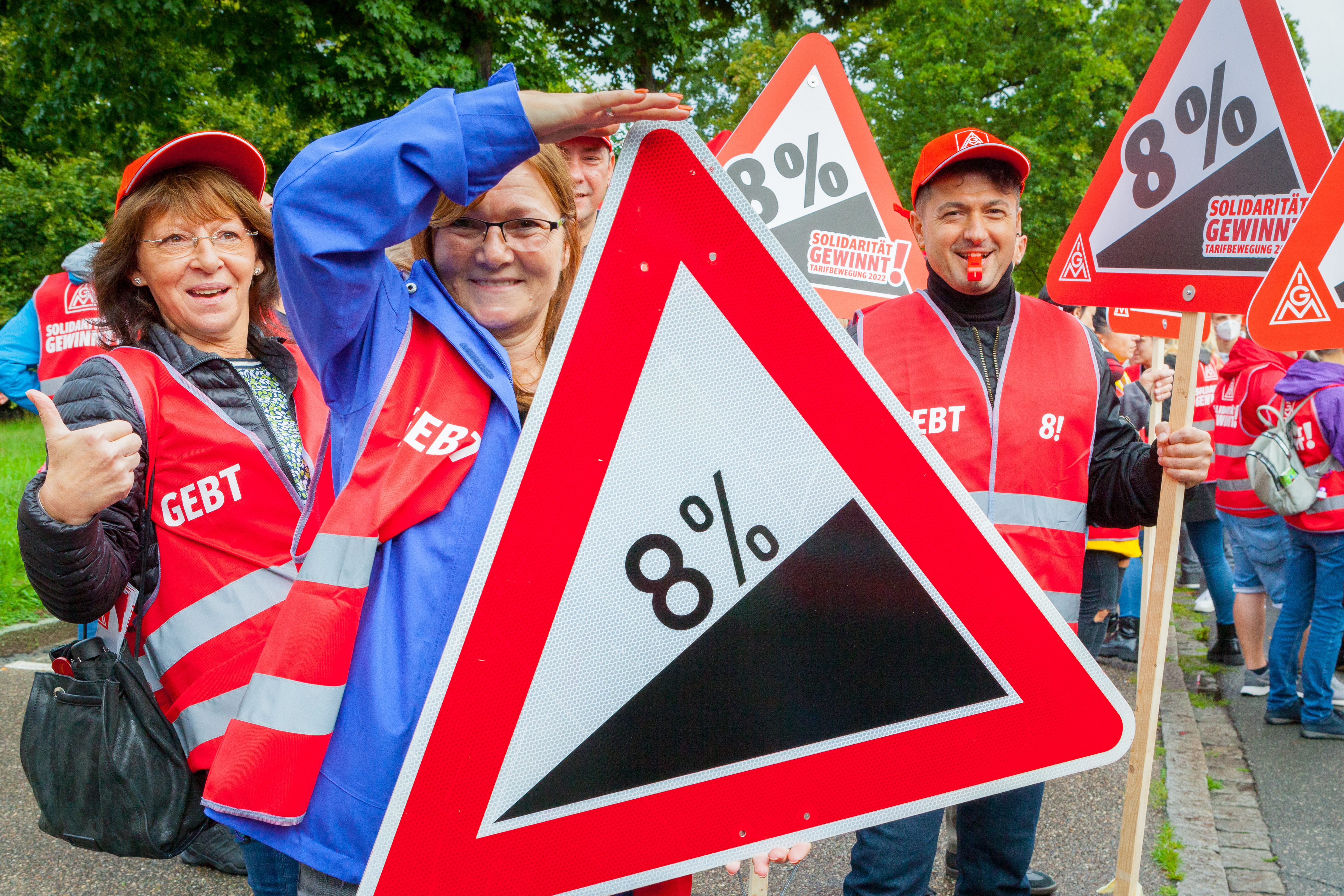 Die IG Metall Bayern ist heute mit ihrer Forderung nach 8 Prozent mehr Geld für zwölf Monate für die Beschäftigten und Auszubildenden in die erste Tarifverhandlung der bayerischen Metall- und Elektroindustrie gestartet. Die Verhandlung in Nürnberg ist in einer konstruktiven Atmosphäre verlaufen, es gab aber keine Annäherung der Tarifparteien.