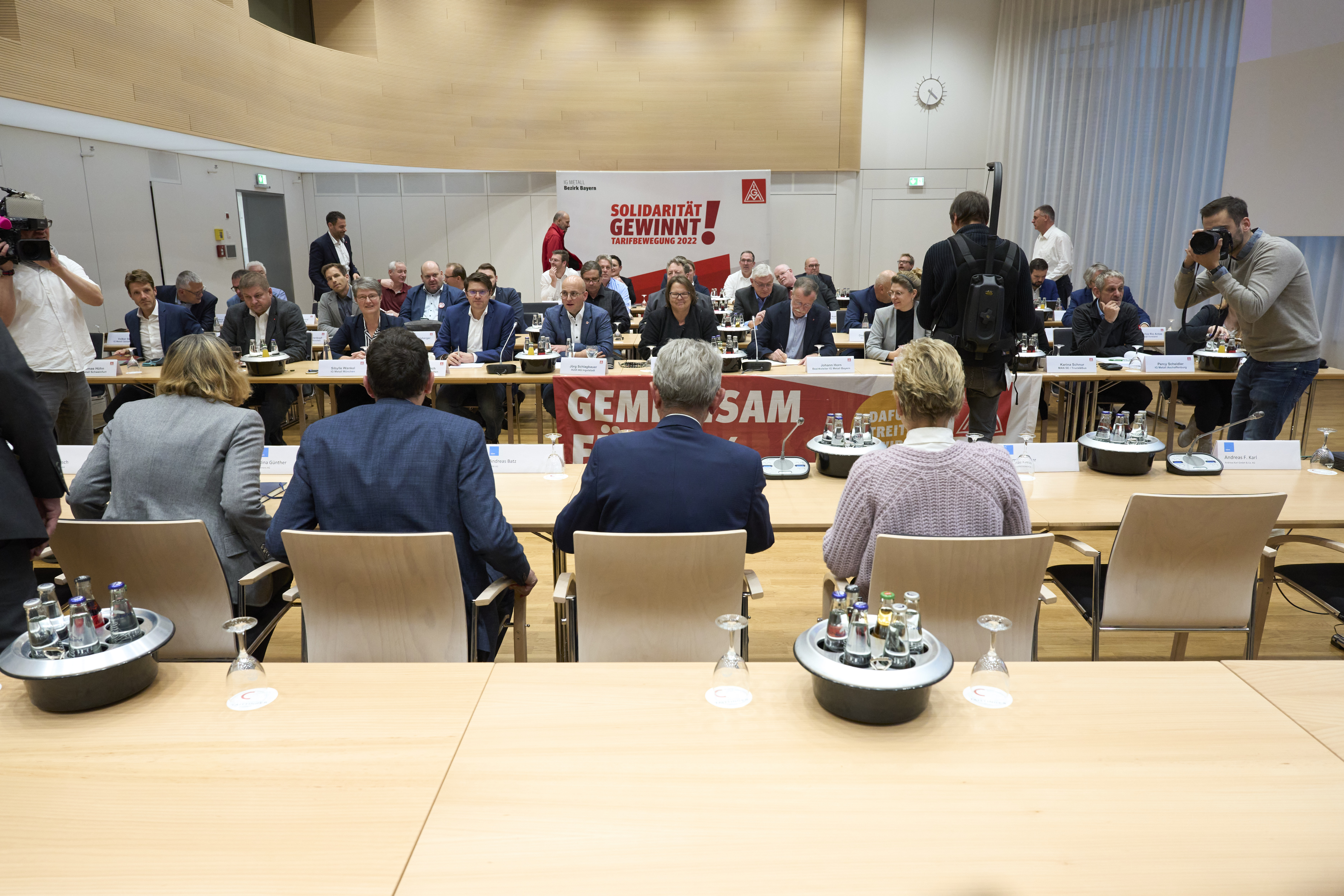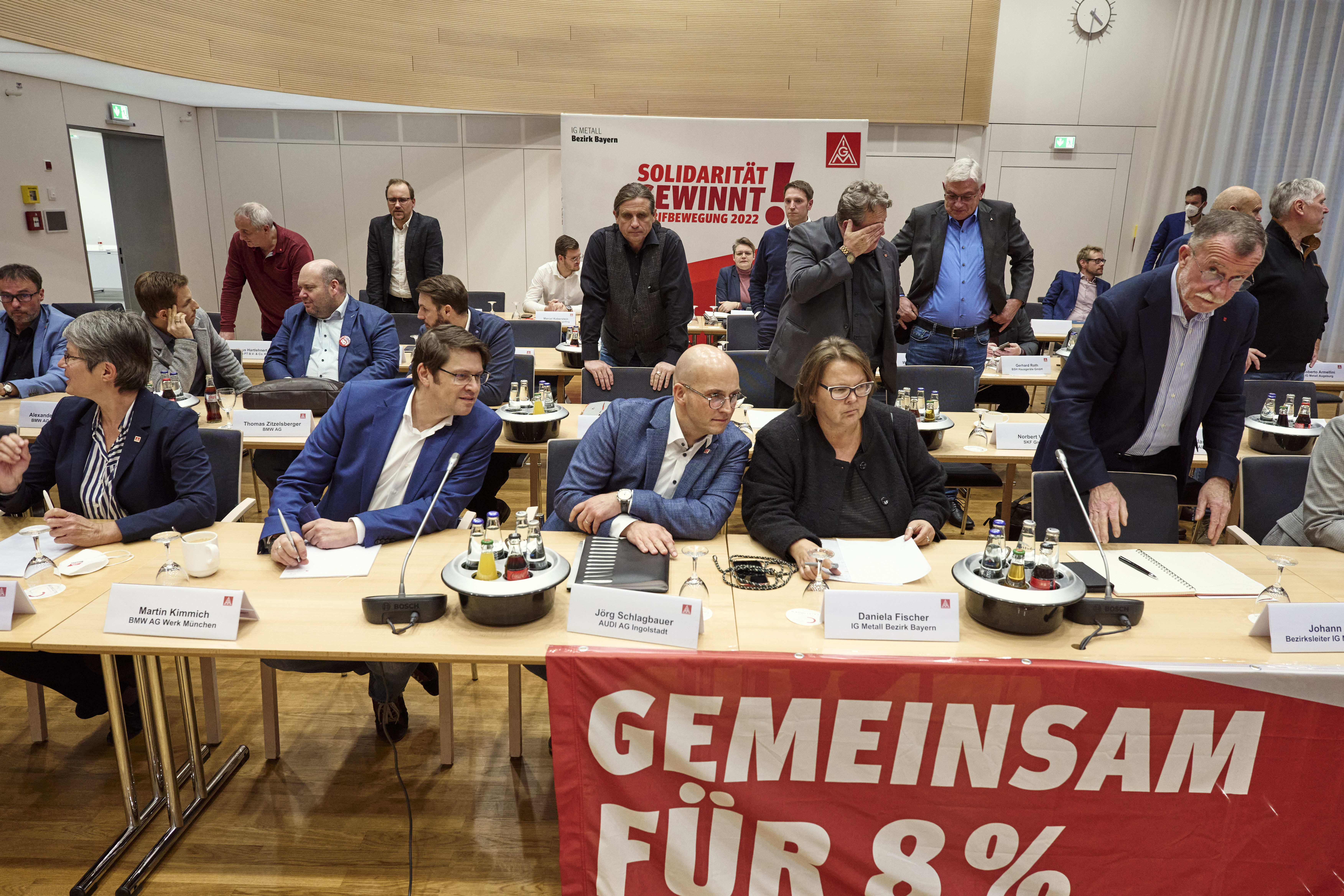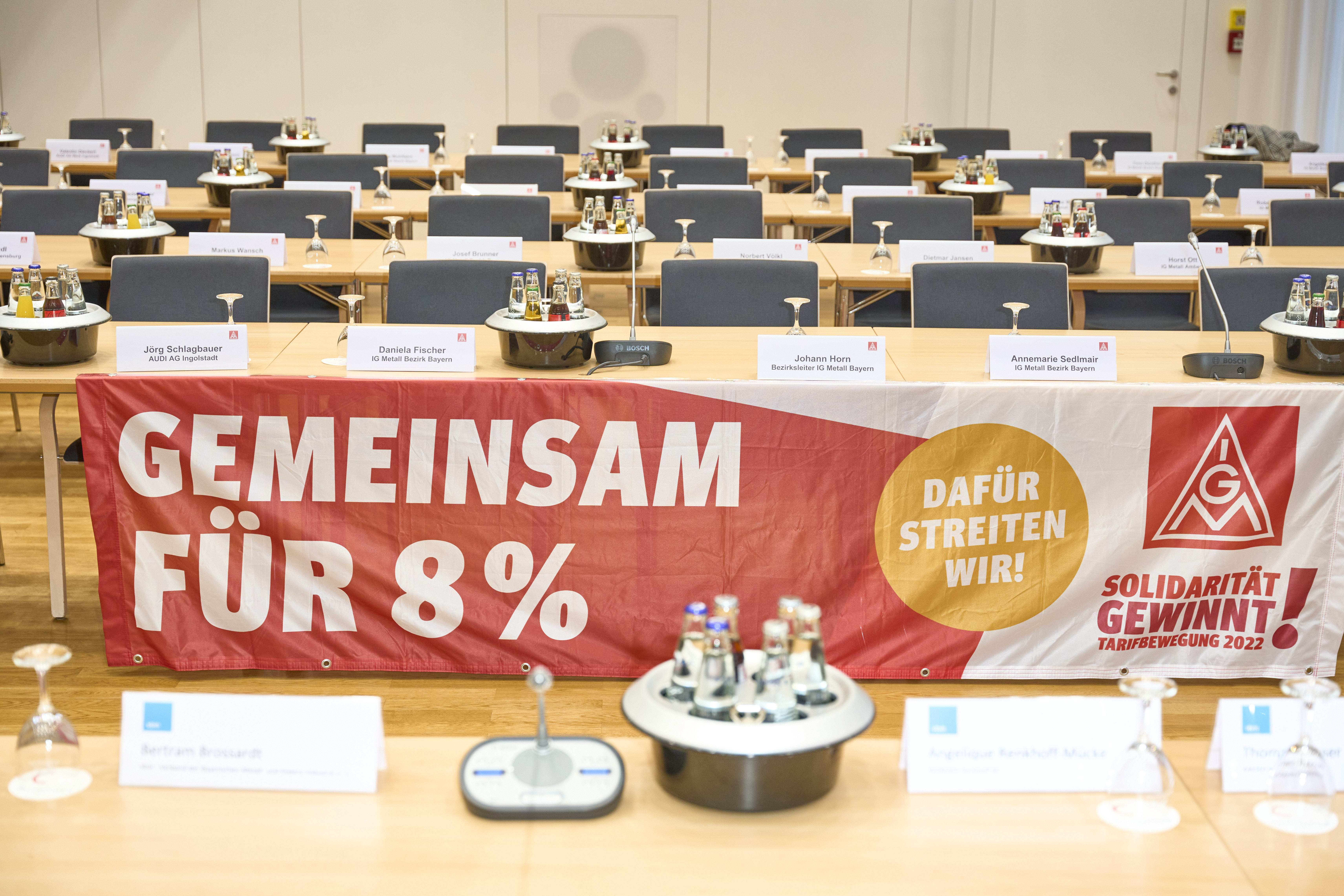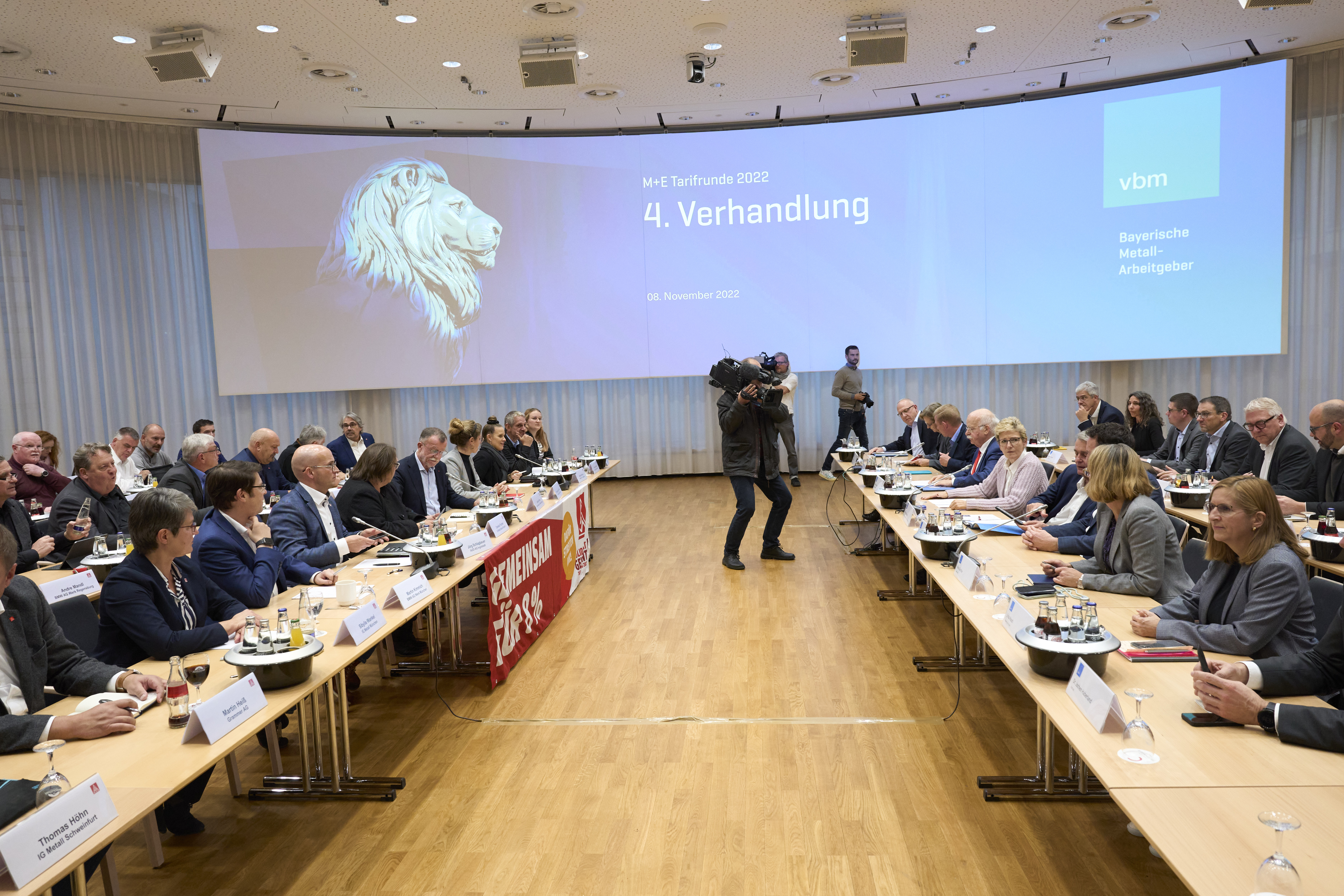 Ergebnislos ist die vierte Tarifverhandlung für die bayerische Metall- und Elektroindustrie am 8. November 2022 in München beendet worden. Die Arbeitgeber haben ihr viel zu schwaches Angebot lediglich wiederholt und immer noch keine Prozentzahl für eine Entgelterhöhung angeboten. Eine Ausweitung unserer Warnstreiks und eine weitere Verschärfung unseres Arbeitskampfes stehen jetzt unmittelbar bevor. Die IG Metall fordert für die 855.000 Beschäftigten in der bayerischen Metall- und Elektroindustrie 8 Prozent mehr Geld für eine Laufzeit von zwölf Monaten.
