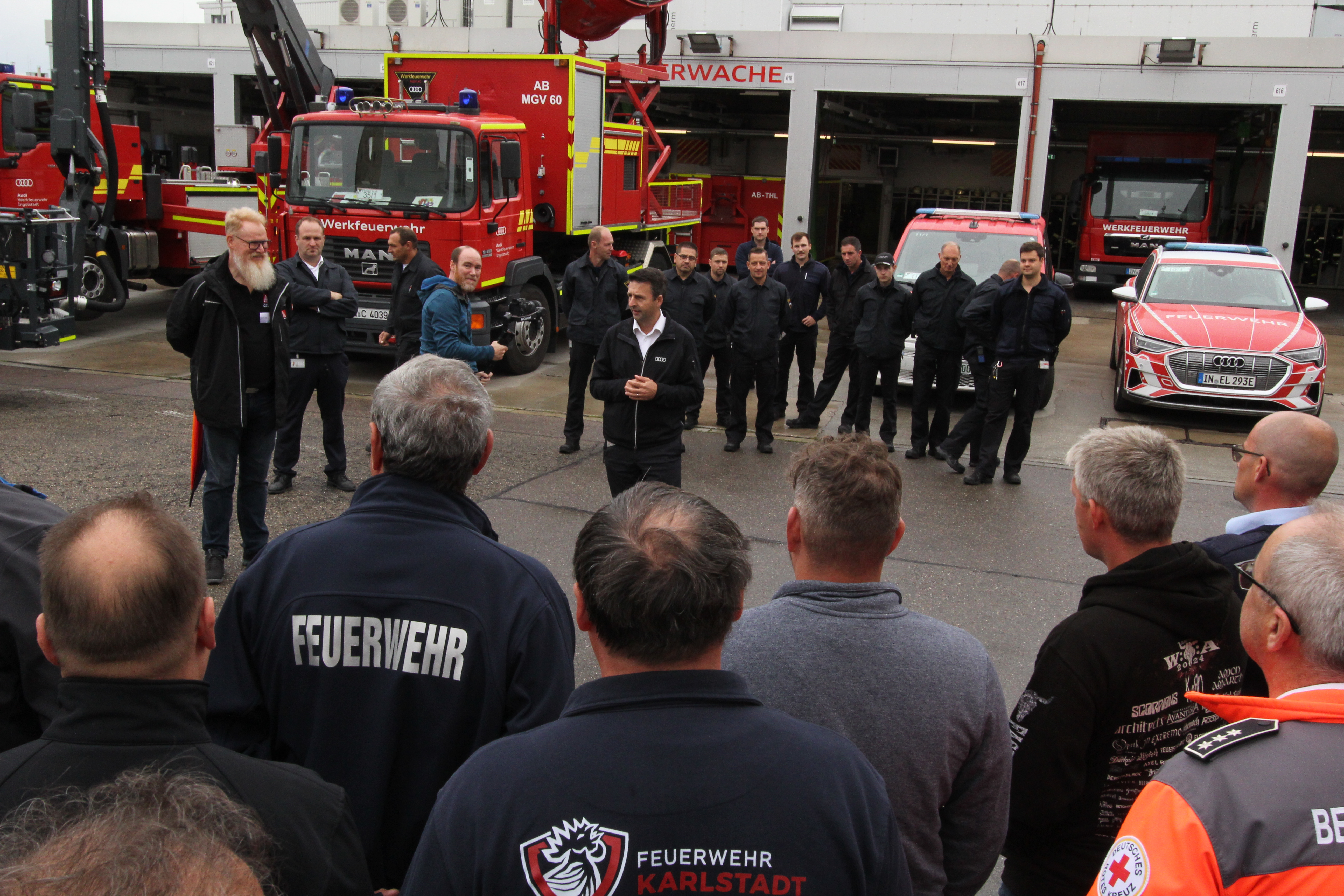 Zum Ehrenamtstag in Ingolstadt hat die IG Metall Bayern aus ihren 21 Geschäftsstellen 80 ehrenamtliche Metaller*innen aus den „Blaulichtorganisationen“ stellvertretend für die vielen Metaller*innen mit ehrenamtlichen Mehrfachfunktionen eingeladen. Sie haben unter anderem über Perspektiven für das Ehrenamt im Betrieb diskutiert. Der Kabarettist Christian Springer, mit dem von ihm gegründeten Verein Orienthelfer e.V. selbst ehrenamtlich stark aktiv, überzeugte mit einem politischen und pointierten Beitrag zum Thema. Ein praktisches und anschauliches Highlight für die Teilnehmer*innen war eine Besichtigung der Fahrzeuge und Ausrüstung der Audi-Werkfeuerwehr.