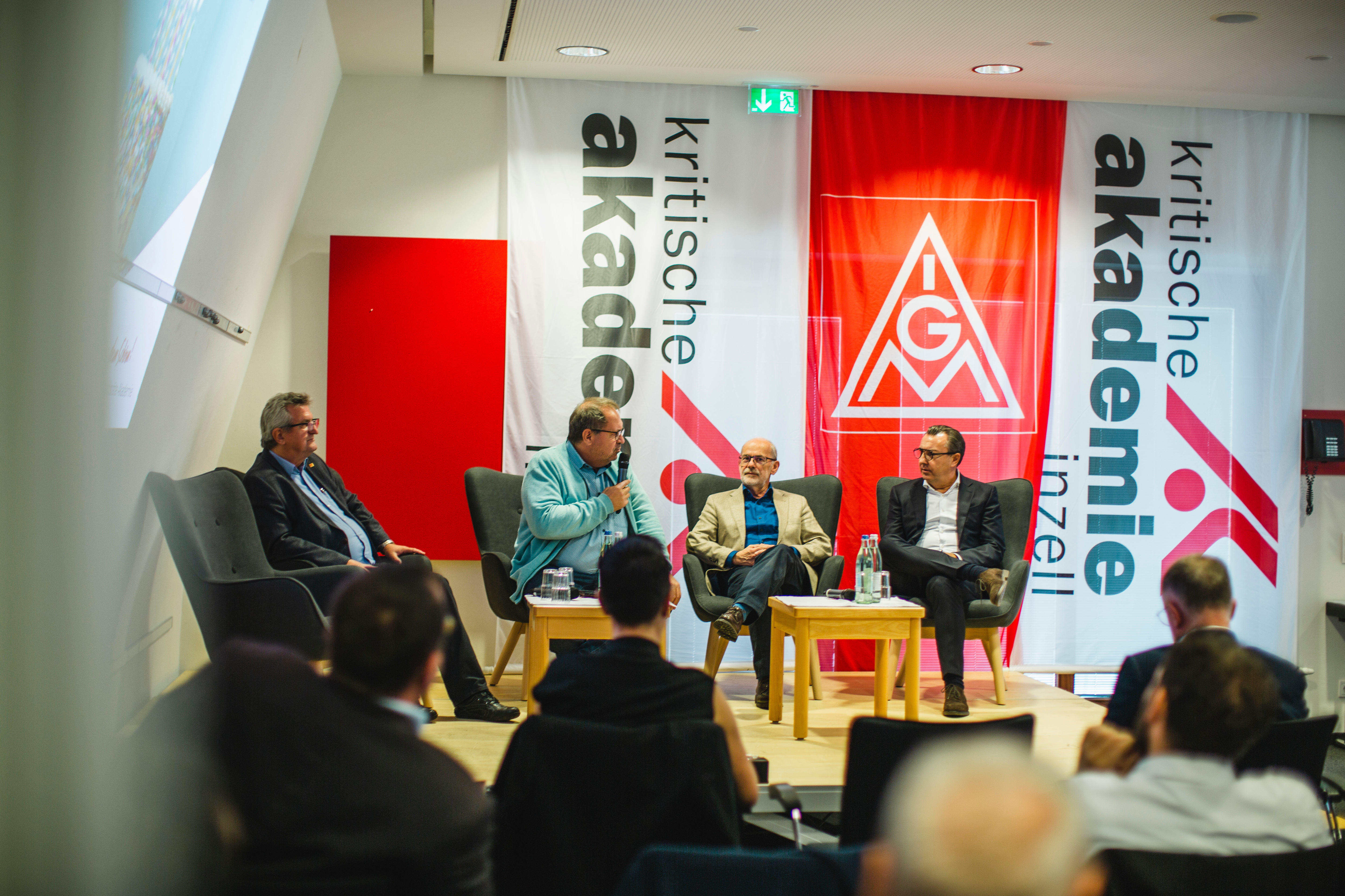 Darin waren sich auch die Gäste auf dem Podium einig. Der ehemalige IG Metall-Bezirksleiter Jürgen Wechsler, Robert Grashei, erster Bevollmächtigter der IG Metall Landshut und Peter Kippes, damals 2. Bevollmächtigter der IG Metall Schweinfurt und heute Leiter Betriebspolitik in der Vorstandsverwaltung, stellten sich in einer ersten Runde den Fragen von Moderator Andreas Schmitt aus der Bezirksleitung. Wechsler, einer der Initiatoren der BAB, schwärmte: „Die BAB ist kein Baby mehr, sondern ausgewachsen.“ Ein bayerisches Erfolgsmodell, aus dem ein Pilotprojekt für Deutschland wurde. Mit der BAB sei viel mehr Qualität in die gewerkschaftliche Bildungsarbeit hineingekommen, betonte auch Kippes. „Qualität in allen Bereichen“, ergänzte Grashei. Die Leute seien nicht nur vom Inhalt der Seminare begeistert, sondern auch vom Ambiente in den Bildungsstätten. „Denn sie fühlen sich dort gut behütet.“