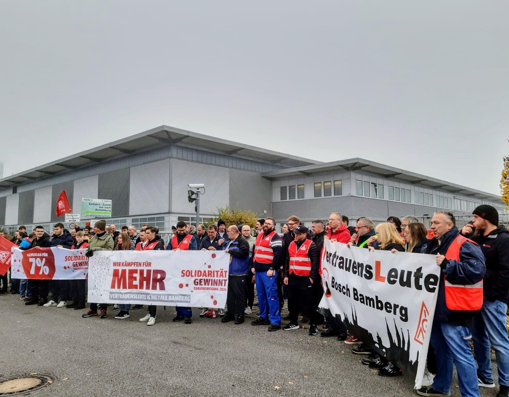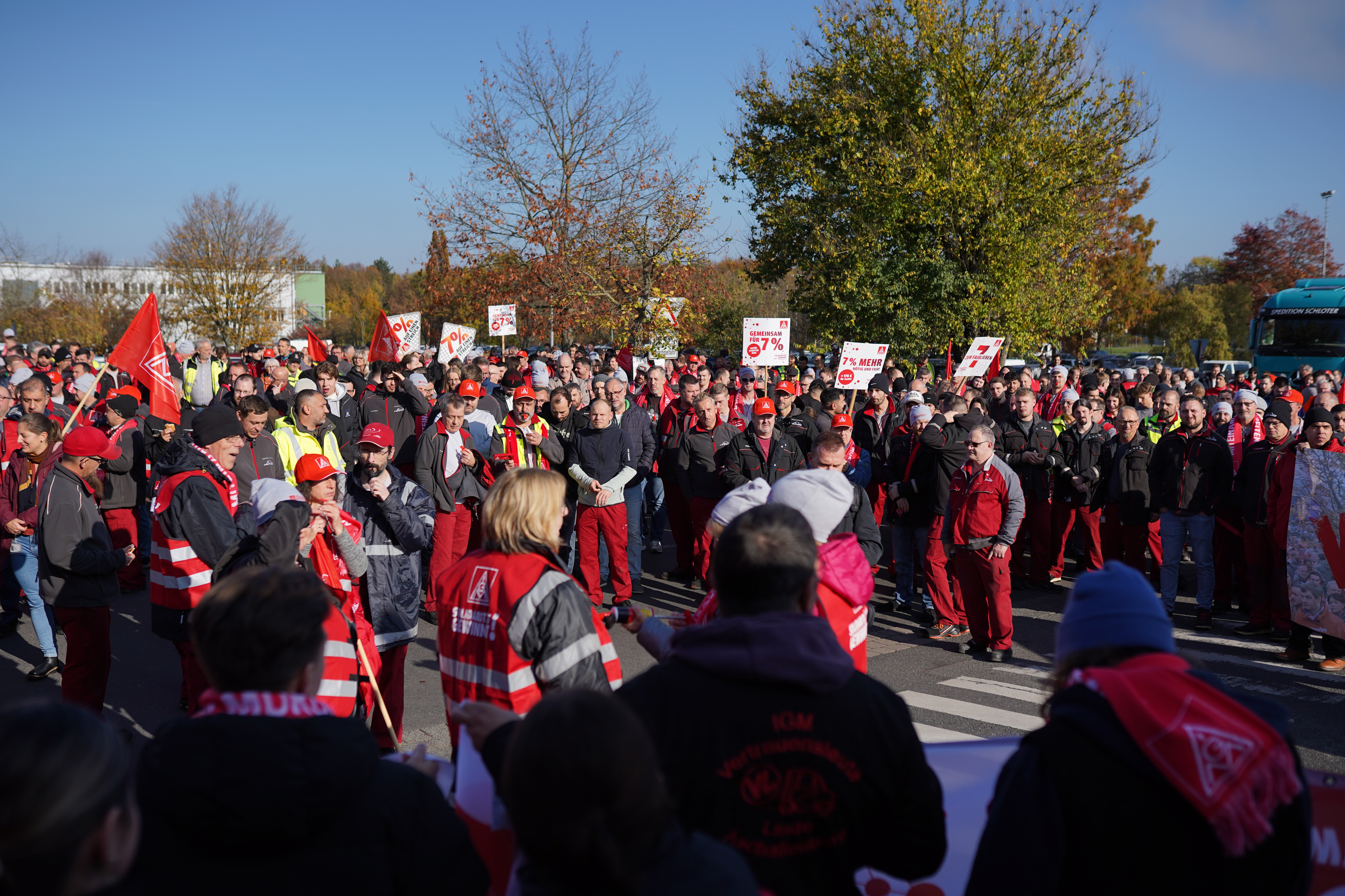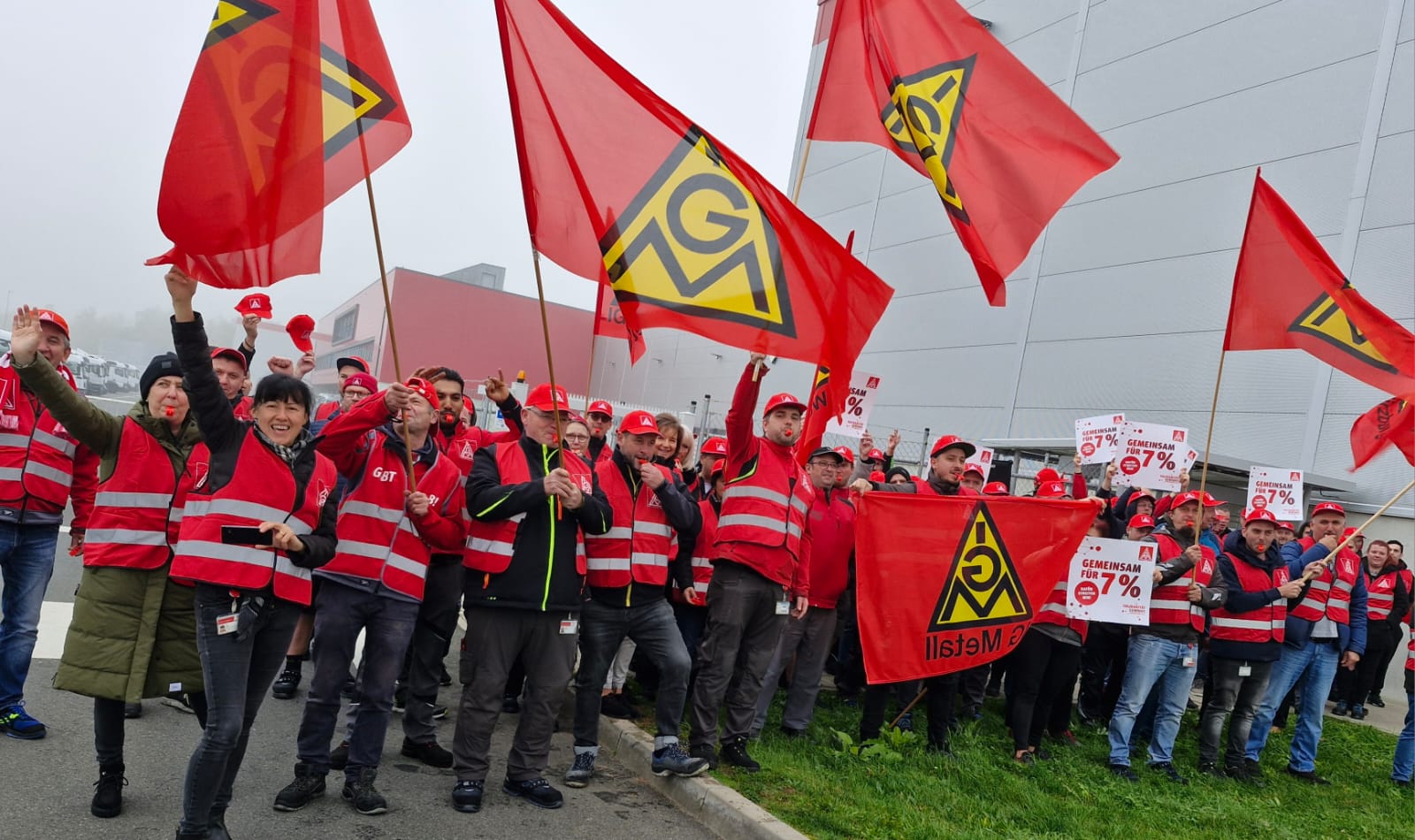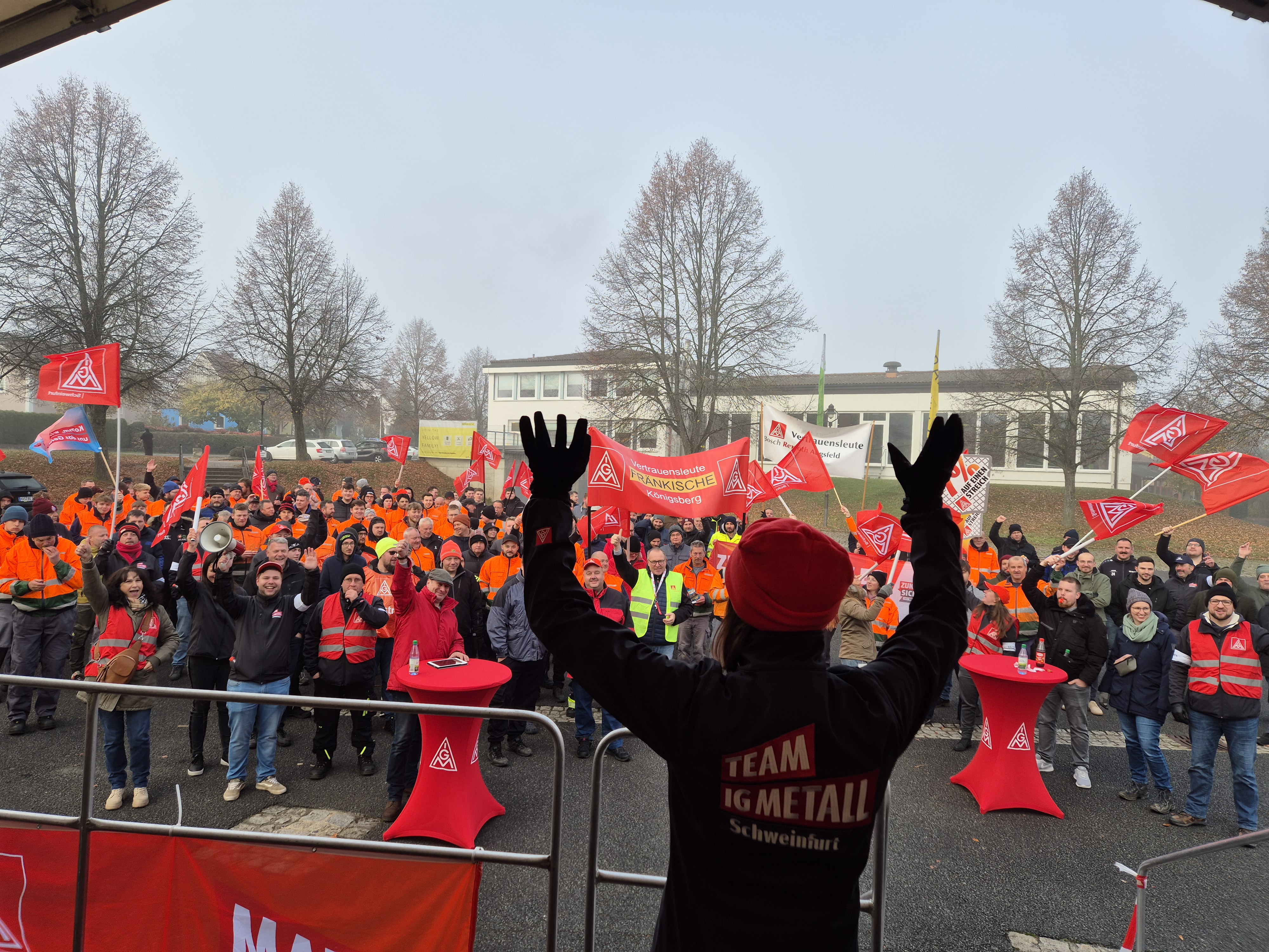 In München versammelten sich 600 Warnstreikende von KNDS und Siemens Mobility zu einer gemeinsamen Kundgebung. Eine Warnstreik-Kundgebung mit 150 Beschäftigten gab es auch vor dem Betrieb der Verhandlungsführerin des Arbeitgeberverbandes vbm: Warema Renkhoff in Wertheim-Bettingen. An den Warnstreiks bei den Grammer-Betrieben in der Oberpfalz haben sich bis zum frühen Nachmittag 450 Beschäftigte beteiligt, weitere Schichten folgen.