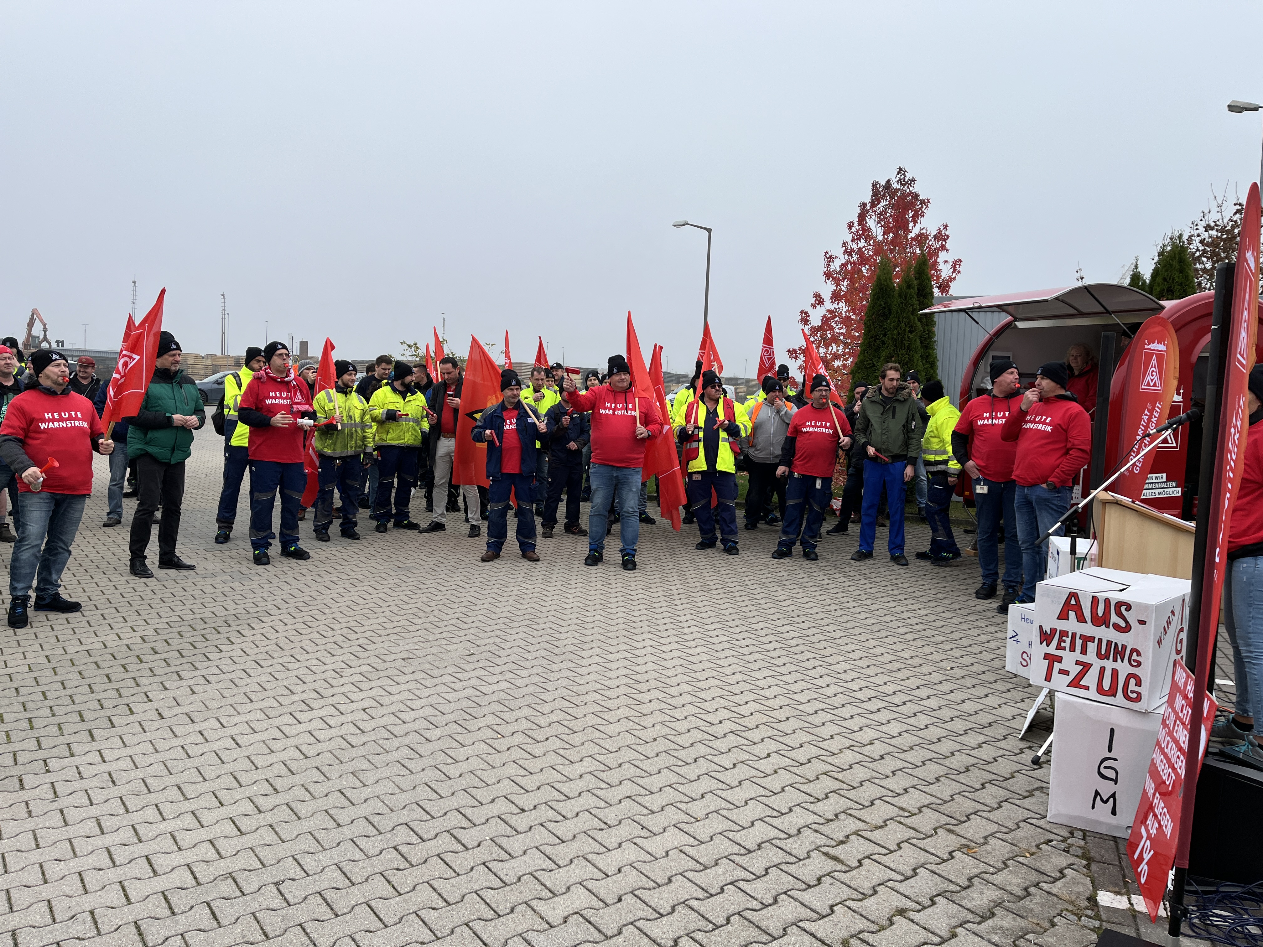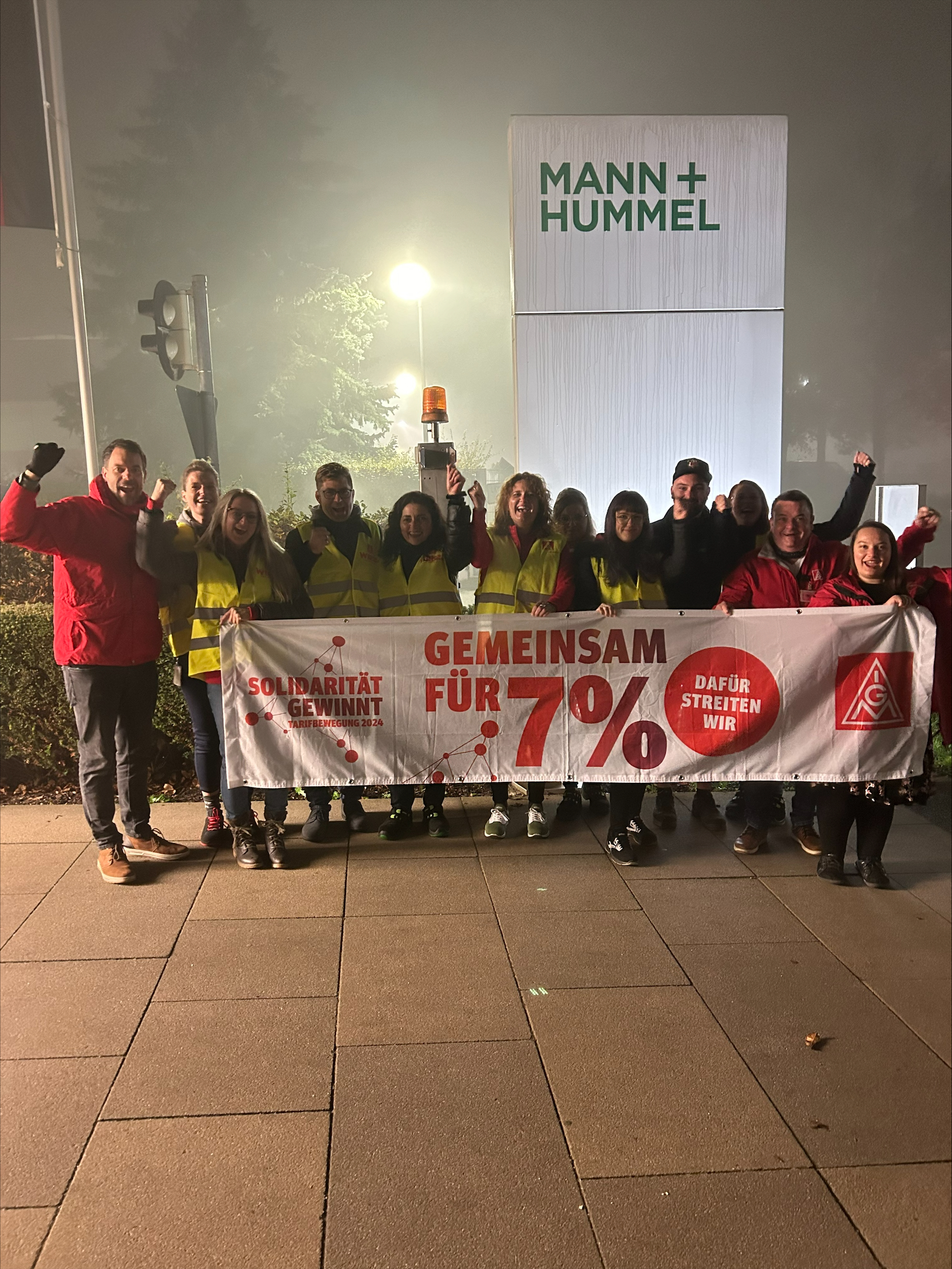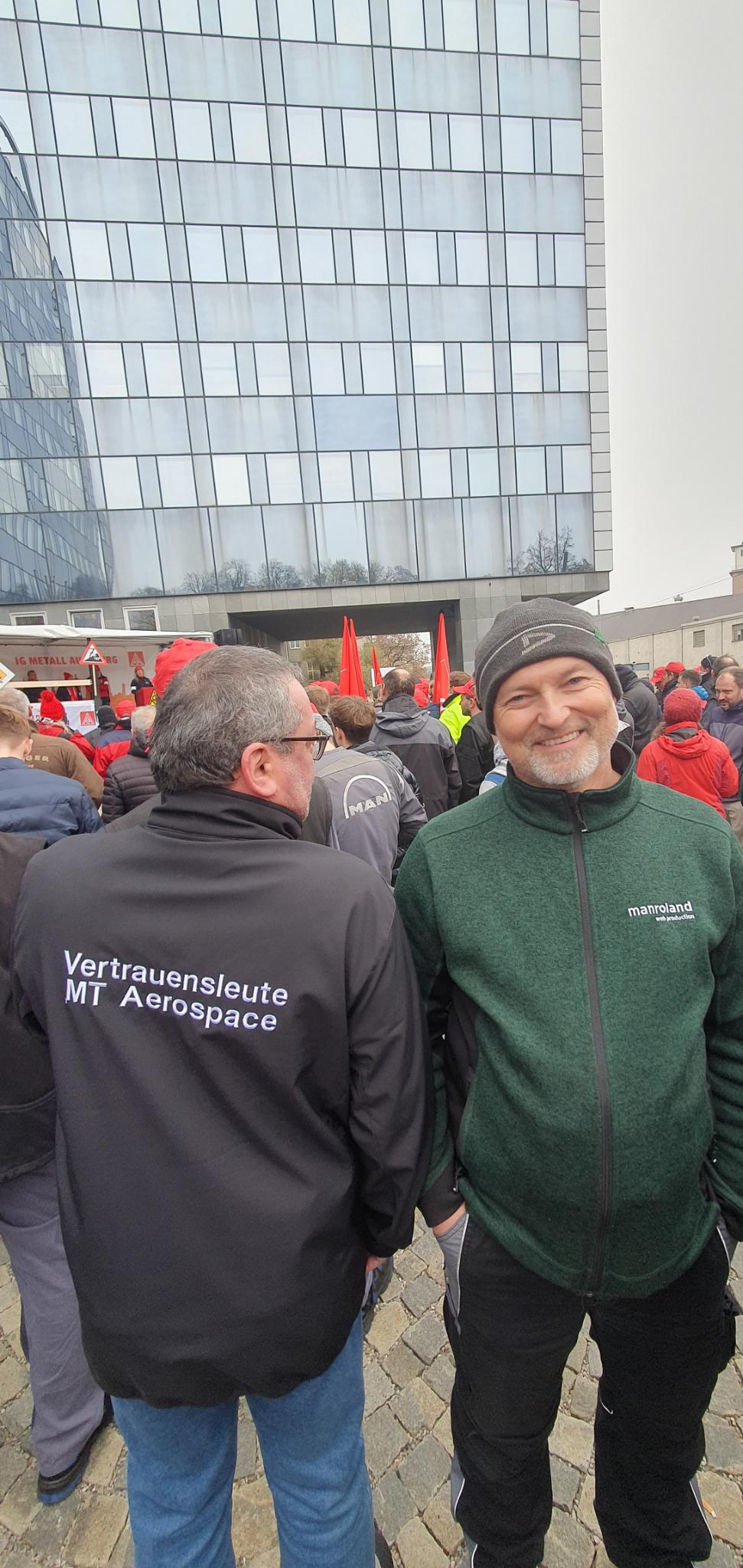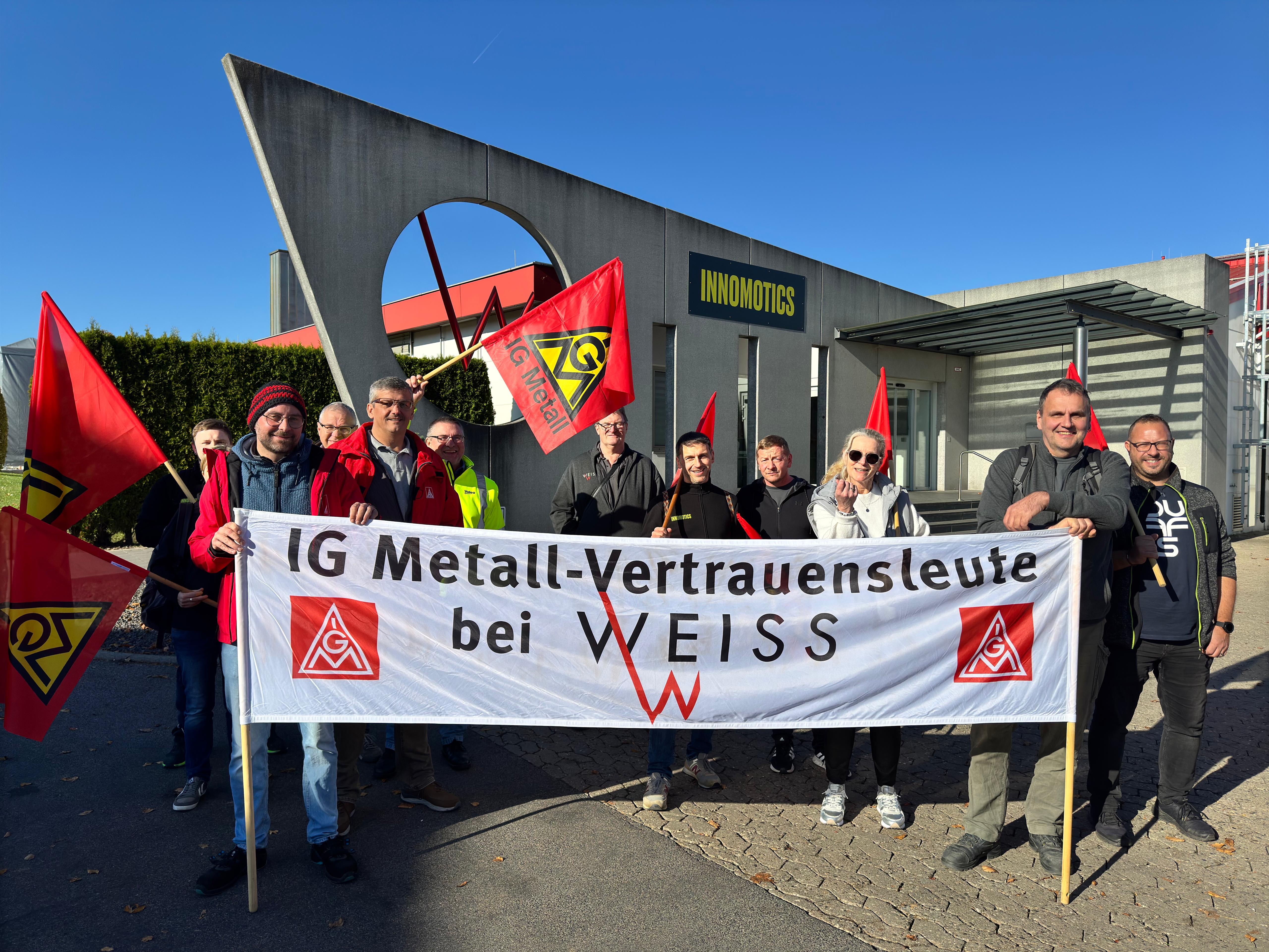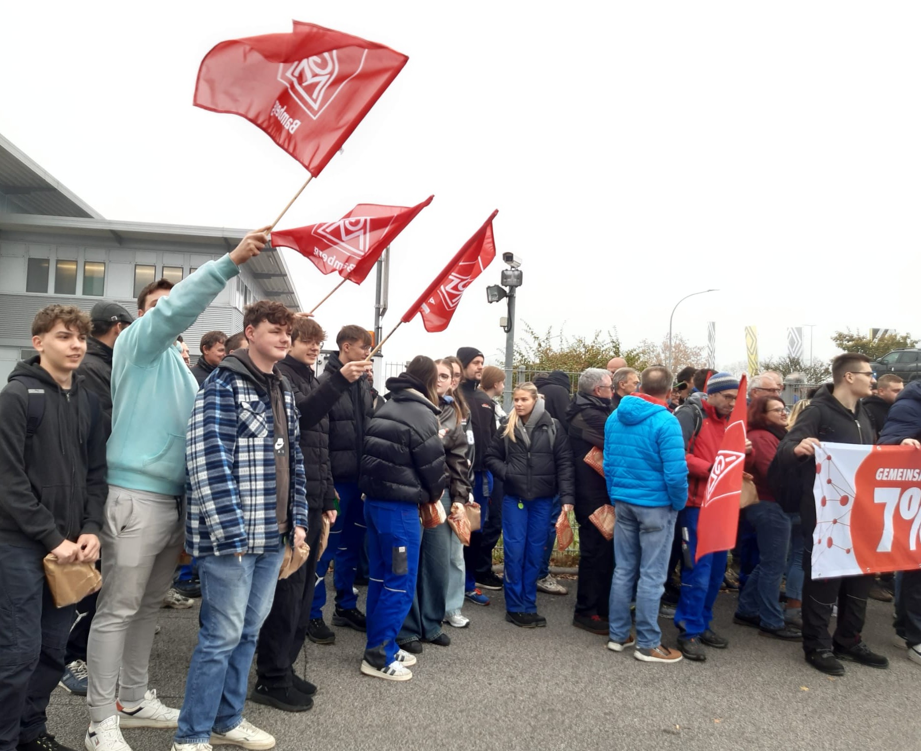 In München versammelten sich 600 Warnstreikende von KNDS und Siemens Mobility zu einer gemeinsamen Kundgebung. Eine Warnstreik-Kundgebung mit 150 Beschäftigten gab es auch vor dem Betrieb der Verhandlungsführerin des Arbeitgeberverbandes vbm: Warema Renkhoff in Wertheim-Bettingen. An den Warnstreiks bei den Grammer-Betrieben in der Oberpfalz haben sich bis zum frühen Nachmittag 450 Beschäftigte beteiligt, weitere Schichten folgen.