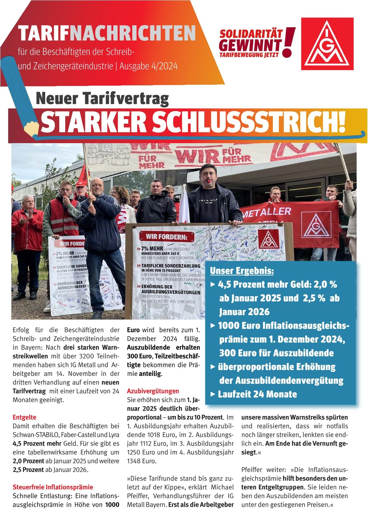 4,5 Prozent mehr Geld in zwei Stufen und 1000 Euro Inflationsausgleichsprämie. Überproportionale Erhöhung für Auszubildende. IG Metall-Verhandlungsführer Pfeiffer: „Erst mit unseren intensiven Warnstreiks haben wir die Arbeitgeberseite in Bewegung gebracht.“