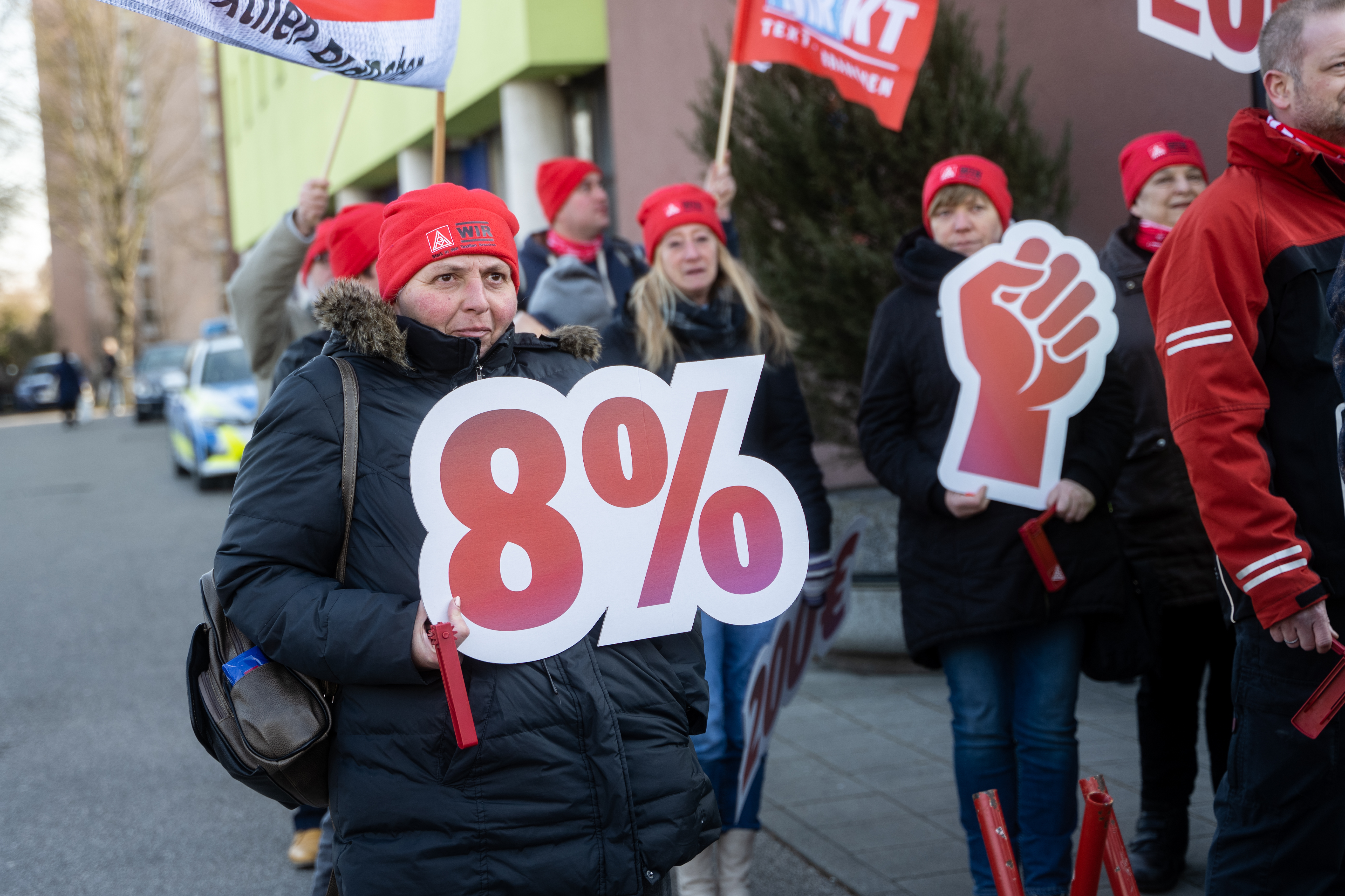 Miriam Bürger, Verhandlungsführerin der IG Metall: „Die Arbeitgeber wollen Beschäftigte, die bis zum Umfallen schuften für einen Lohn von dem kein Leben möglich ist.“ 8 Prozent mehr Geld, mindestens aber 200 Euro sei angemessen, betont sie. „Genauso unsere Forderung nach einer Fortsetzung der Altersteilzeit zu verbesserten Konditionen. Die Unternehmen können und müssen sich das leisten.“